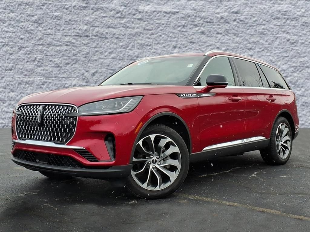 Elevate your driving experience with this exceptional 2025 Lincoln Aviator Reserve. This stunning SUV boasts a captivating Red Carpet Tinted Clearcoat exterior, complemented by a sleek and sophisticated design that commands attention on the road. Powered by a robust 3.0L V6 engine paired with a smooth-shifting 10-Speed Automatic transmission and All-Wheel Drive, this Aviator delivers an exceptional driving experience. Achieve an impressive fuel efficiency of 17 city/25 highway MPG, ensuring you can confidently conquer your daily commute or weekend adventures. Step inside and be captivated by the luxurious cabin, featuring premium leather-trimmed seats, a Revel Audio System with 14 premium speakers, and a Heads-Up Display that keeps vital information within your line of sight. The Panoramic Vista Roof floods the interior with natural light, creating an open and airy atmosphere. Cutting-edge technology abounds, with features like Apple CarPlay, Android Auto, and the Lincoln Digital Experience keeping you connected and entertained. The Lincoln BlueCruise system, included for 4 years, provides hands-free driving capabilities on compatible highways, allowing you to relax and enjoy the ride. Safety is also a top priority, with advanced driver-assist technologies like Adaptive Dynamic Bending Lighting, Adaptive Pixel LED Headlamps, and a 360-degree camera system to help you navigate with confidence. This 2025 Lincoln Aviator Reserve is a one-owner vehicle with a clean CARFAX report, ensuring peace of mind and a hassle-free ownership experience. Don't miss the opportunity to make this exceptional SUV your own. Schedule a test drive today and discover the unparalleled luxury and performance that the Aviator Reserve has to offer.