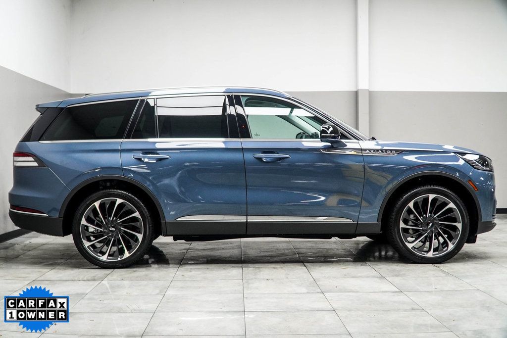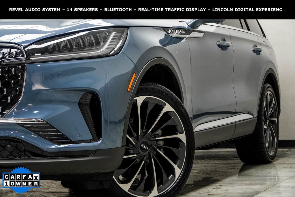 Blue Metallic 2025 Lincoln Aviator Reserve AWD 10-Speed Automatic 3.0L V6 Advanced Heads-Up Display, Auto Air Refresh, Equipment Group 200A, Lincoln BlueCruise Equipped (4-Years Included), Navigation system: Connected Navigation (1-year trial), Wireless Charging Pad. The vehicle is Pre-Owned, is not new, dents, scratches, wear, tear, previous repairs, paintwork, bodywork, defects, hidden damages, rust and imperfections exists and should be expected. We may or may not have all the keys, owner's manuals, and floor mats, but we will be happy to obtain extra ones for you at our cost. Recent Arrival! Odometer is 9517 miles below market average!