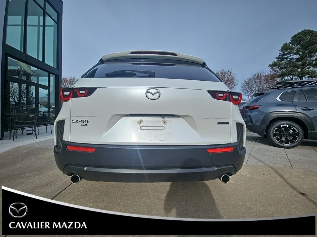 2025 Mazda CX-50 2.5 S Preferred Package Certified. Wind Chill Pearl Carfax One-Owner. AWD Automatic SKYACTIV 2.5L 4-Cylinder DOHC 16V Keyless entry, alloy wheels, backup camera, blind spot monitoring, Bluetooth, cruise control, power driver seat, satellite radio, tilt & telescoping steering wheel, steering wheel controls. This vehicle is located at Cavalier Mazda in Chesapeake Virginia. Recent Arrival! 25/31 City/Highway MPG Mazda Certified Pre-Owned Details: Includes Autocheck Vehicle History Report with 3 Year Buyback Protection. 3 month SiriusXM trial subscription. Warranty Deductible: $0. Vehicle History. Powertrain Limited Warranty: 84 Month/100,000 Mile (whichever comes first) from original in-service date. Roadside Assistance. Limited Warranty: 12 Month/12,000 Mile (whichever comes first) after new car warranty expires or from certified purchase date. Transferable Warranty. 160 Point Inspection.