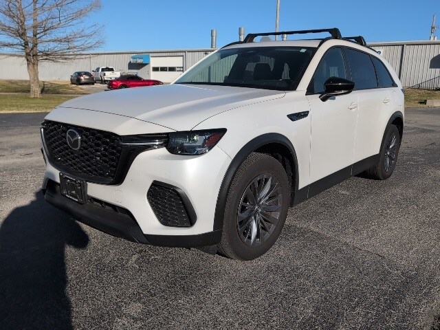Rhodium White Premium 2025 Mazda CX-70 3.3 Turbo Preferred AWD 8-Speed Automatic I6 Turbo Air Conditioning, AppLink/Apple CarPlay and Android Auto, Auto High-beam Headlights, Automatic temperature control, Black Lug Nuts & Black Wheel Locks, Brake assist, Bumpers: body-color, Cargo Net, Compass, Crossbars in Black, Delay-off headlights, Driver door bin, Driver vanity mirror, E911 Automatic Emergency Notification, Electronic Stability Control, Exterior Parking Camera Rear, Front Bucket Seats, Front Center Armrest w/Storage, Front dual zone A/C, Front reading lights, Fully automatic headlights, Heated door mirrors, Heated Front Bucket Seats, Heated front seats, Illuminated entry, Leather Seat Trim, Leather Shift Knob, Leather steering wheel, Mazda Connected Services, Outside temperature display, Overhead console, Pandora Internet Radio Integration, Panic alarm, Passenger door bin, Passenger vanity mirror, Power door mirrors, Power driver seat, Power Liftgate, Power moonroof, Power passenger seat, Power steering, Power windows, Rain sensing wipers, Rear air conditioning, Rear reading lights, Rear seat center armrest, Rear window defroster, Rear window wiper, Remote keyless entry, Rhodium White Premium Paint Charge, Roadside Assistance Kit, Speed control, Split folding rear seat, Spoiler, Steering wheel mounted audio controls, Tachometer, Telescoping steering wheel, Tilt steering wheel, Trip computer, Turn signal indicator mirrors, Variably intermittent wipers, Wheels: 19" x 8.5J Aluminum Alloy. Wood Motor is proud to serve our communities in Southwest Missouri, Northwest Arkansas, Northeast Oklahoma, and Southeast Kansas. The ultimate commitment to our customers is to deliver an experience that's with ease in negotiation, a transparent buying process, while also earning a customer for life. Recent Arrival! Odometer is 6710 miles below market average! 23/28 City/Highway MPG Vehicle pricing includes all offers and incentives. Internet Price does include dealer arranged financing. Tax, Title and Licensing not included in vehicle pricing; this must be paid by the purchaser. Pricing does not include $599 Dealer Documentation Fee or $6 Lien Filing Fee. This is easily done by calling us or by visiting us at the dealership. Must finance with Wood Ford or Carthage to receive internet pricing. Pricing does not include $1975 Wood Care Package. Contact Wood Wood Ford or Carthage for details. Max payload/towing estimate ratings shown. See dealer for details.