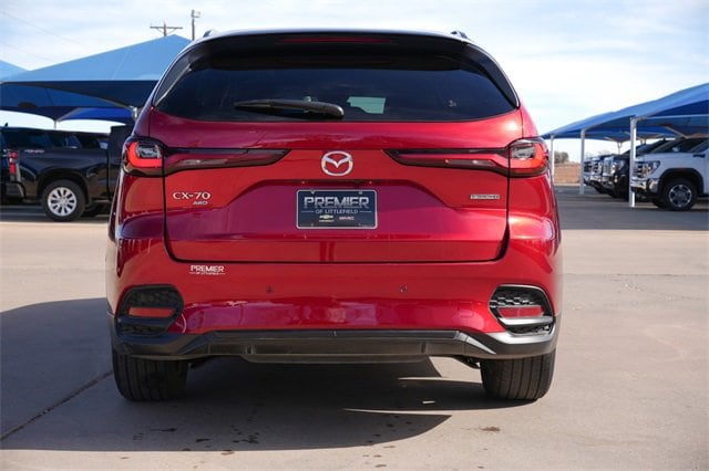 Recent Arrival! 2025 Mazda CX-70 3.3 Turbo Preferred. Mazda CX-70 Soul Red Crystal Metallic 3.3 Turbo Preferred CX-70 3.3 Turbo Preferred, I6 Turbo, Exterior Parking Camera Rear, Infotainment System Voice Command, Pandora Internet Radio Integration, Power moonroof. AWD 8-Speed Automatic I6 Turbo. Odometer is 9303 miles below market average! 23/28 City/Highway MPG. Premier is more than just part of our name. Our goal is to provide exceptional customer satisfaction with every interaction. We don’t just try to sell you a vehicle, we take the time to get to know you and find out what you need. Once we have a better understanding of what you’re looking for, we’ll recommend models that make a good fit. Premier Chevrolet GMC of Littlefield is dedicated to your satisfaction before, during, and after your purchase. We'll go the extra mile to take care of you.