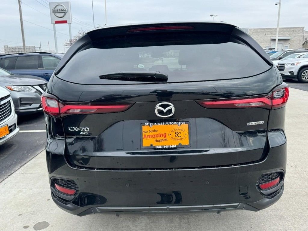 CARFAX One-Owner. Jet Black Mica 2025 Mazda CX-70 4D Sport Utility 3.3 Turbo Preferred I6 Turbo AWD 8-Speed Automatic Clean CARFAX. We Make AMAZING Happen at St. Charles Nissan. Serving the St. Charles County and St. Louis Metro area since 1979! New, Used, and Certified Vehicles Advertised Price does not include dealer installed accessories. Prices do not include additional fees and costs of closing, including destination fee, government fees and taxes, any finance charges, $620 administration fee, any emissions testing fees or other fees. Contact dealer for most current information. *Pictures, options and mileage are deemed reliable, but not guaranteed. All rebates and discounts have been deducted from sale price including destination to meet the requirements of the manufacturer. Low Price Promise!! Stop in today to find out why your friends and neighbors buy thousands of cars from us each year! *Customers may not qualify for all rebates used in determining sale price. Must finance through Nissan Motor Finance for special APR & some incentive programs. We carry the largest Nissan inventory in the state of Missouri and back up our commitment to offer the greatest selection and purchasing convenience to our customers. You will find no dealer mark-ups or addendums to the manufacturer's sticker prices here. We mean it when we say & No Gimmicks - No Games! We attempt to make your buying experience straight-forward. St. Charles Nissan is not responsible for any errors on vehicle options. At St. Charles Nissan, the #1 volume Nissan dealership in Missouri for 2024, you’ll find the largest selection of new and used cars for sale near you—with best prices, fast financing, and top trade-in values.