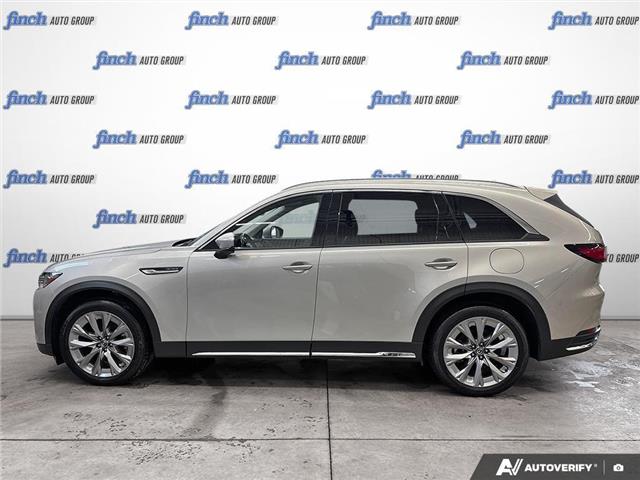 Experience the Future of Driving with the 2025 Mazda CX-90 MHEV GT: Where Performance Meets Luxury in a Stunning Deep Crystal Blue Mica Finish. Step into the realm of sophistication and innovation with the 2025 Mazda CX-90 MHEV GT, a used SUV that redefines what it means to drive in style. This all-wheel-drive marvel combines a turbocharged straight 6-cylinder engine with a gasoline/mild electric hybrid system, promising an exhilarating yet efficient performance. The 8-speed automatic transmission with dual shift mode ensures a seamless driving experience, whether you're navigating city streets or exploring the great Canadian outdoors. Safety is paramount, with features like blind spot monitoring, lane keeping assist, and front collision mitigation providing peace of mind on every journey. The panoramic roof and sun/moonroof invite the outside in, while the luxurious leather seats and heated steering wheel offer unparalleled comfort. The heads-up display and aerial view display system keep you informed and in control, while the premium sound system and smart device integration ensure entertainment is always at your fingertips. With its striking Deep Crystal Blue Mica exterior, the Mazda CX-90 MHEV GT is not just a vehicle; it's a statement. Discover a driving experience that perfectly balances power, safety, and luxury.