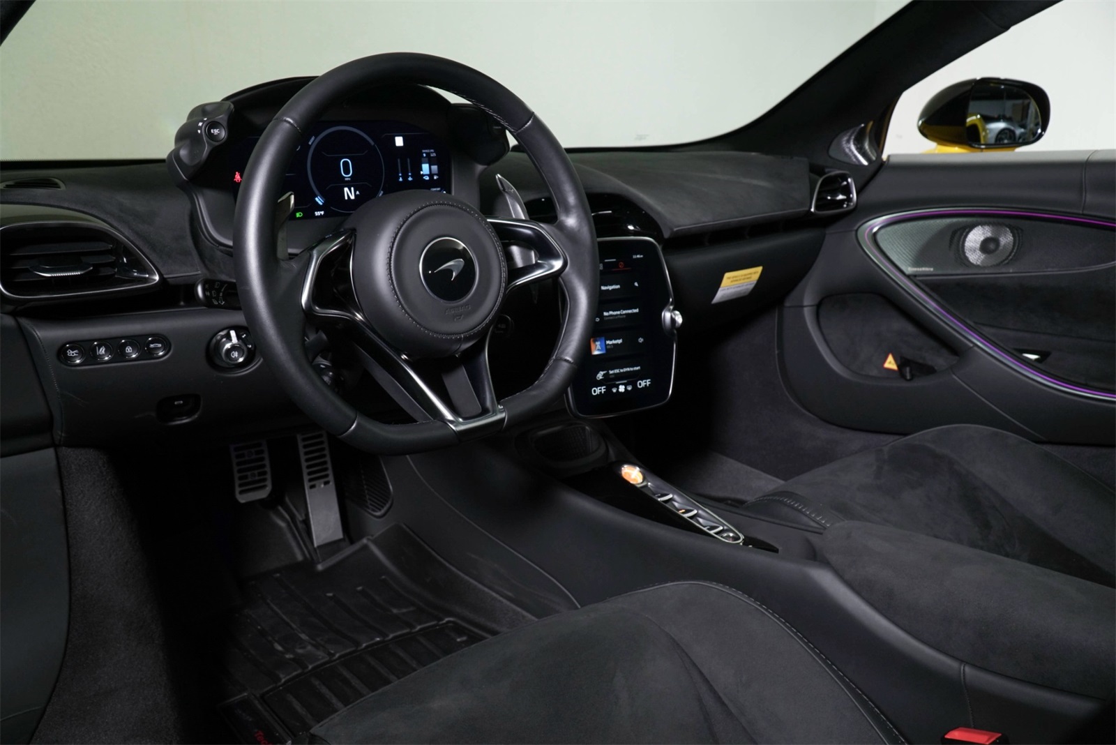 The 2025 McLaren Artura Spider represents the next generation of McLaren performance, combining cutting-edge hybrid technology with lightweight engineering and open-top exhilaration. As McLaren's first series-production hybrid Spider, the Artura delivers exceptional performance, enhanced efficiency, and everyday usability while preserving the brand's unmistakable supercar character. Finished in striking MSO Volcano Yellow over a driver-focused Black interior, this Artura Spider is boldly specified with premium options and performance enhancements. The 2025 McLaren Artura Spider in MSO Volcano Yellow with a Black interior delivers an exhilarating blend of hybrid performance, lightweight engineering, and open-top excitement. With its advanced V6 hybrid powertrain, carbon-intensive construction, and striking specification, this Artura Spider stands as a bold and forward-looking McLaren supercar designed for both the road and spirited driving.