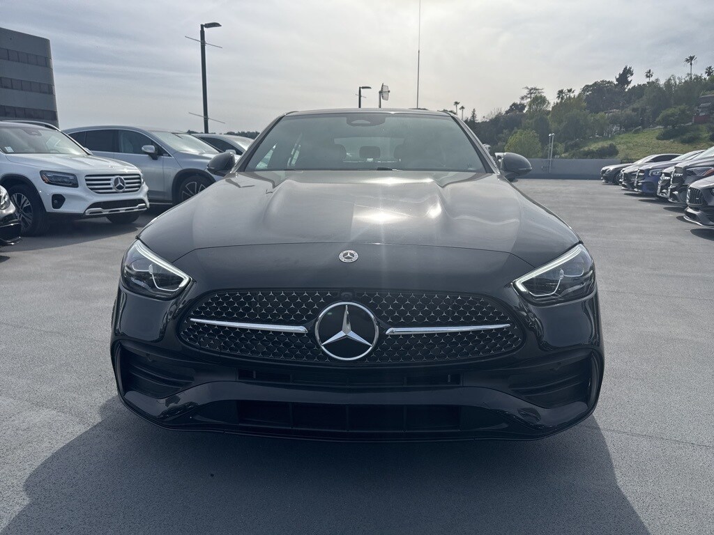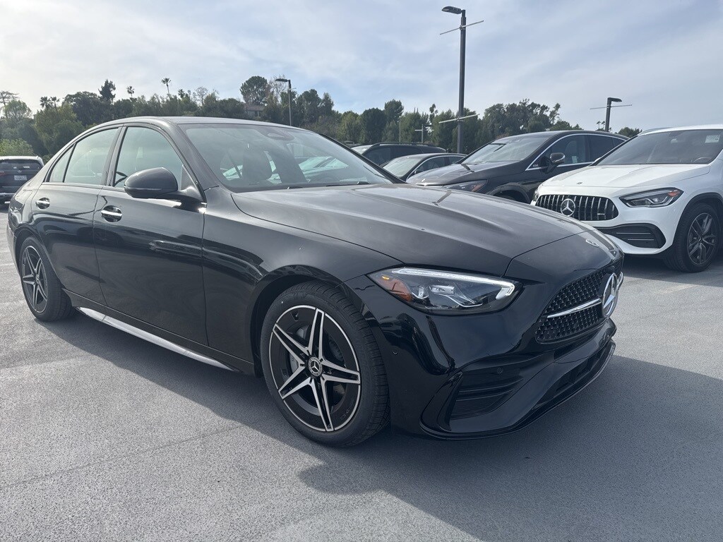 Black 2025 Mercedes-Benz C-Class C 300 4MATIC 4MATIC 9-Speed Automatic 2.0L I4 Turbocharged. Recent Arrival! 24/33 City/Highway MPG. Factory demo vehicle, 4MATIC, AMG Body Styling, AMG Line Exterior, AMG Line with Night Package, MB-Tex Dashboard, Night Package, Panorama Roof, Perforated Brake Discs, Sport Suspension with Sport Steering System, Star Grille. Black 2025 Mercedes-Benz C-Class C 300 4MATIC.