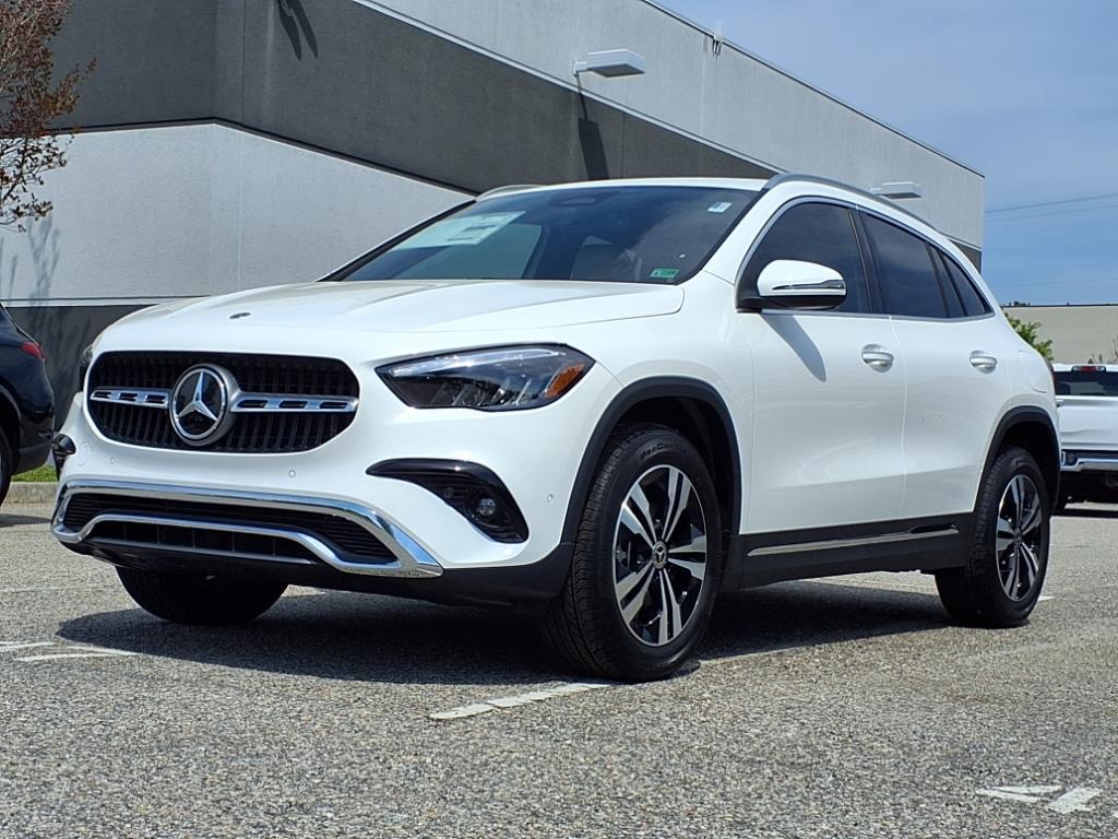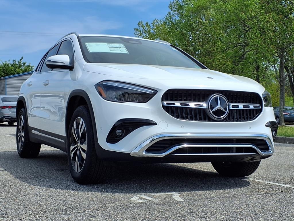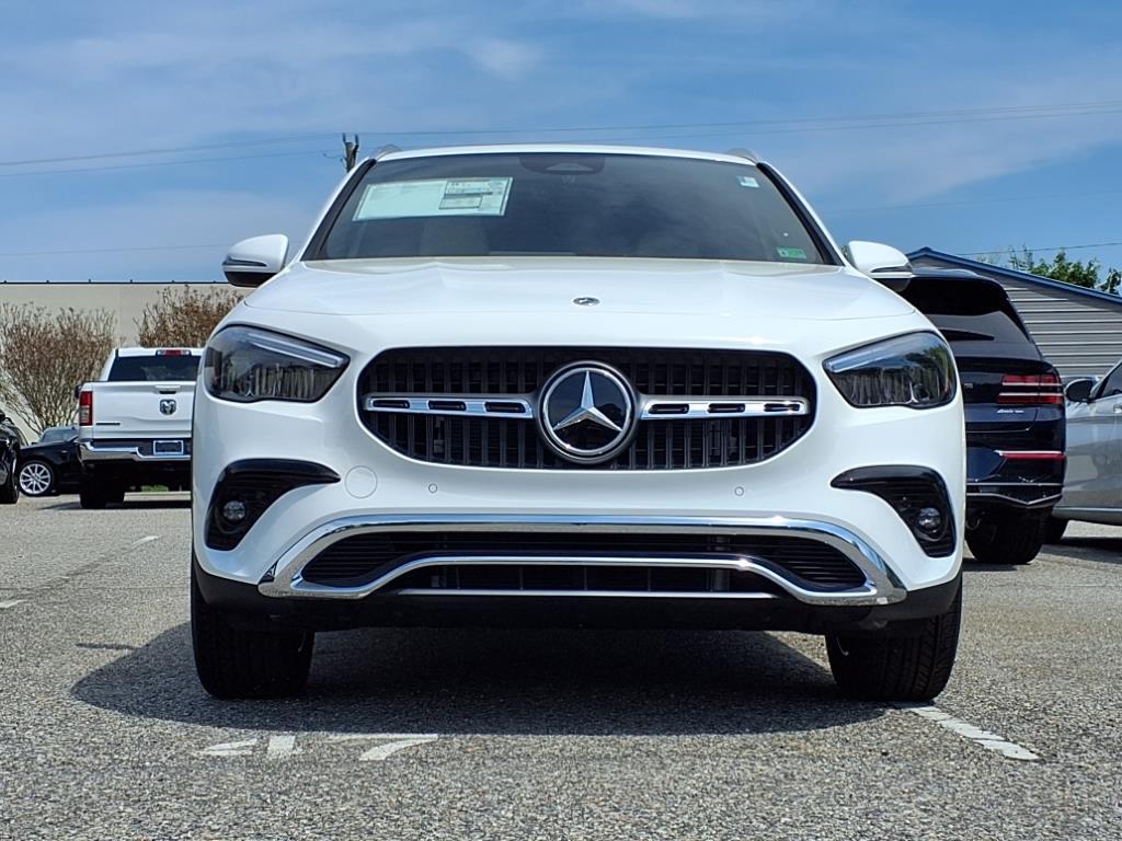 This new 2025 Mercedes-Benz GLA 250 is white with a stylish interior. It features a turbocharged 2.0L engine, offering a sporty driving experience. With advanced safety features like forward collision mitigation and pedestrian impact prevention, this vehicle prioritizes both performance and security.