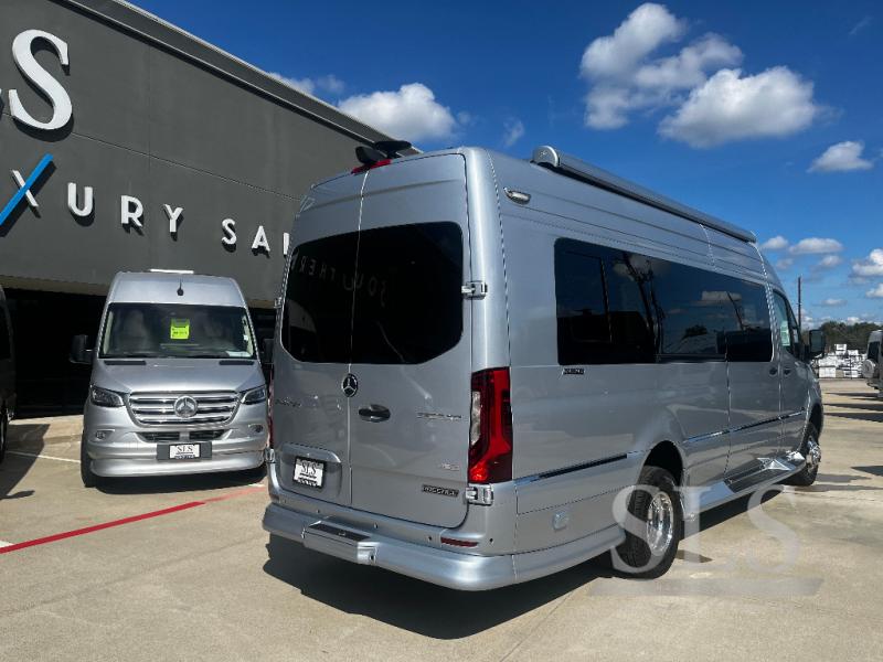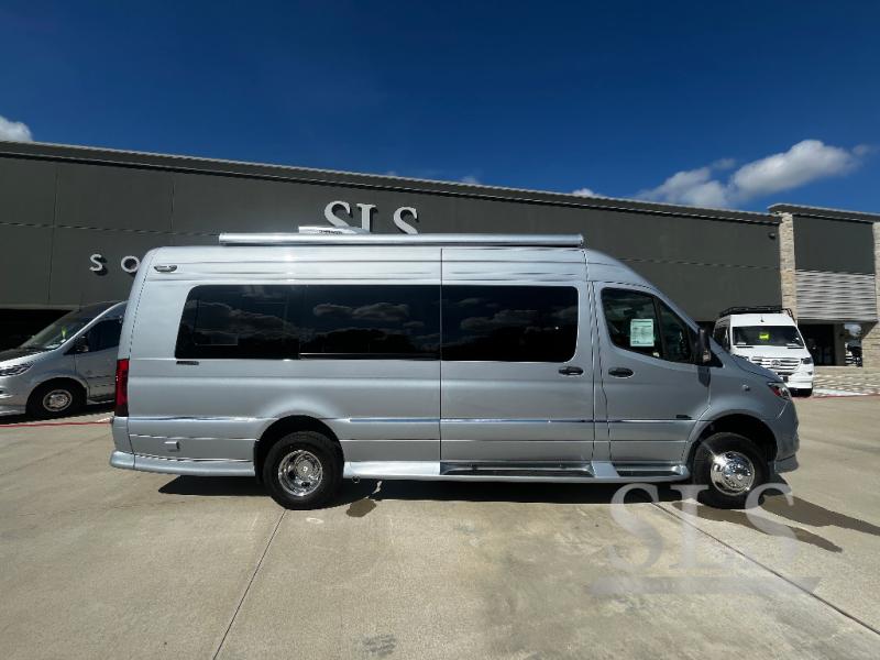 Midwest Automotive Designs Passage Class B diesel motorhome MD4 Lounge 170 EXT highlights: Four Captain's Chairs, Rear Lounge Bed, Removable Table, Wardrobe, Wet Bath. This Passage Class B diesel motorhome will have you daydreaming about your next trip with your family. Just imagine relaxing on the rear power lounge while planning your activities for the day. You also have the ability to add an optional power drop-down loft bed to this model so that you can have even more comfort and convenience. Come see what else you will love about this coach! Each Passage Class B diesel motorhome begins with the safety and performance engineering of the Mercedes-Benz Sprinter and includes luxury and convenience throughout. The diesel/electronic water heater offers hot water on demand, the stainless steel microwave and recessed cooktop allow you to make meals whenever you like, and the refrigerator allows you to store cold items while traveling. The style and comfort of the custom seating, composite seamless flooring, and solid surface countertops will impress you every time you take to the road. You also have the convenience of technology with rooftop solar charging system, an HDMI input, and multiple 120V outlets!