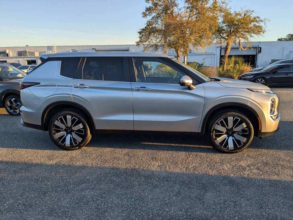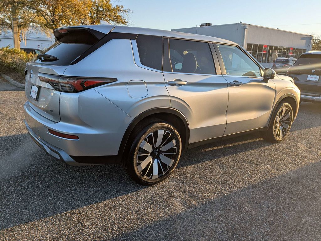 Silver 2025 Mitsubishi Outlander SE SE 2.5L I4 DOHC 16V LEV3-SULEV30 181hp FWD CVT 3rd row seats: split-bench, 4-Wheel Disc Brakes, 8 Speakers, ABS brakes, Air Conditioning, Alloy wheels, AM/FM radio: SiriusXM, Android Auto & Apple CarPlay, Auto High-beam Headlights, Auto-dimming Rear-View mirror, Automatic temperature control, Brake assist, Bumpers: body-color, Driver door bin, Driver vanity mirror, Dual front impact airbags, Dual front side impact airbags, Electronic Stability Control, Emergency communication system: Mitsubishi Connect w/ 24-month trial, Exterior Parking Camera Rear, Four wheel independent suspension, Front anti-roll bar, Front Bucket Seats, Front Center Armrest w/Storage, Front dual zone A/C, Front fog lights, Front reading lights, Fully automatic headlights, Garage door transmitter: HomeLink, Heated door mirrors, Heated Front Bucket Seats, Heated front seats, Illuminated entry, Knee airbag, Leather Shift Knob, Leather steering wheel, Low tire pressure warning, Navigation System, Occupant sensing airbag, Outside temperature display, Overhead airbag, Overhead console, Panic alarm, Passenger door bin, Passenger vanity mirror, Power door mirrors, Power driver seat, Power Liftgate, Power steering, Power windows, Radio data system, Radio: AM/FM 12.3" Navigation w/Smartphone-Link, Rain sensing wipers, Rear anti-roll bar, Rear seat center armrest, Rear side impact airbag, Rear window defroster, Rear window wiper, Reclining 3rd row seat, Remote keyless entry, Security system, Speed control, Speed-Sensitive Wipers, Split folding rear seat, Spoiler, Steering wheel mounted audio controls, Synthetic Leather Seating Surfaces, Tachometer, Telescoping steering wheel, Tilt steering wheel, Traction control, Trip computer, Turn signal indicator mirrors, Variably intermittent wipers, Wheels: 20" Two-Tone Alloy. Recent Arrival! Odometer is 15277 miles below market average! 24/31 City/Highway MPG