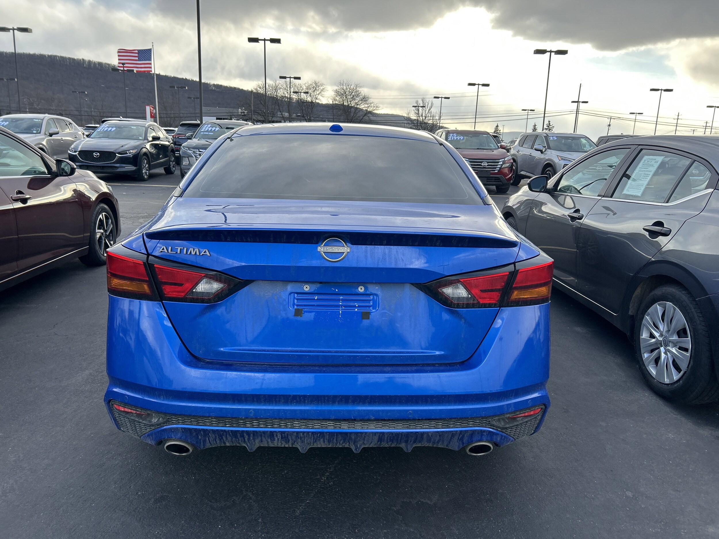 Boasts 39 Highway MPG and 27 City MPG! This Nissan Altima delivers a Regular Unleaded I-4 2.5 L/152 engine powering this Variable transmission. Charcoal, cloth seat trim, Bluestone Pearl. This Nissan Altima features the following options. SV Special Edition Package includes illuminated kick plates, NissanConnect, 12.3" HD color display with multi-touch control, wireless Apple CarPlay and Android Auto, and wireless phone charging pad, rear spoiler, wheels: 17" Gloss Black Alloy, single panel moonroof, remote engine start with intelligent climate control, visible rear exhaust with finisher, dual zone automatic HVAC, Carbon Fiber Look center console finisher, body-color outside mirrors. Tax, title, license and dealer doc fees are extra. Vehicles with the letters "dr" following the stock number are of previous daily rental use, "n" following the stock number denotes a vehicle of Canadian origin.
