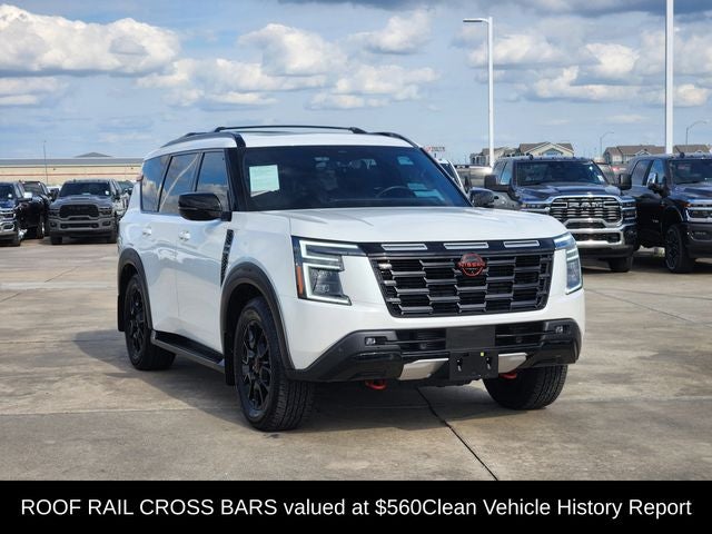 One owner, Clean Vehicle History Report, Immaculate Condition, leather, no accident history, 4WD, 3rd row seats: split-bench, biometric cooling, hands-free power liftgate, heated & ventilated driver & passenger seats, heated 2nd row seats, in-car camera, intelligent dash cam, navigation system, panoramic moonroof, power liftgate, PRO-4X Premium Package. Shop entirely from home. We'll even deliver to your door. Car buying made easy at Mark! Call us today at 337-474-2640 to schedule a test drive. Recent Arrival! CARFAX One-Owner. Aspen White 2025 Nissan Armada PRO-4X 4WD 3.5L DOHC 9-Speed Automatic.