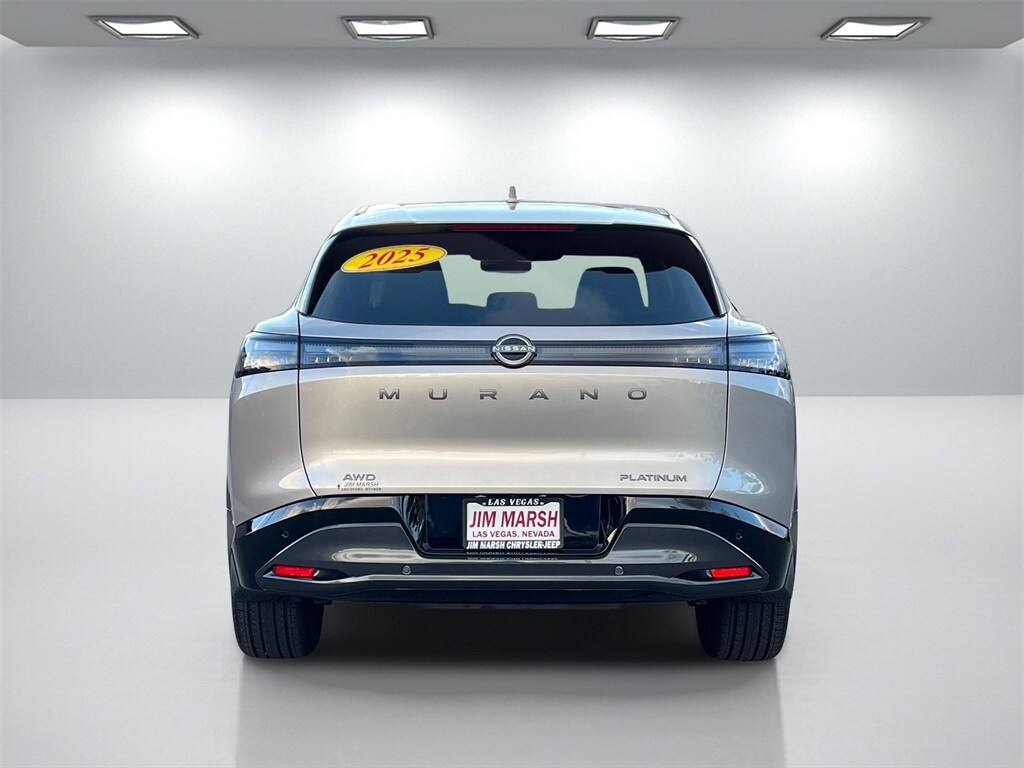 Champagne Silver Metallic 2025 Nissan Murano Platinum AWD 9-Speed Automatic I4 9-Speed Automatic, AWD. Odometer is 697 miles below market average! Call 844-538-1681 today to schedule your test drive! Market Value: . Due to 3rd party feed, the sales price and MSRP may differ, please contact dealer for details. Pricing provided may vary significantly between website and dealer as a result of supply chain constraints. Contact your dealer for updated vehicle pricing. Dealer pricing plus reconditioning fees on all preowned vehicles. See dealer for qualifications and complete details. Discounts and Rebates only apply to Nevada residents.