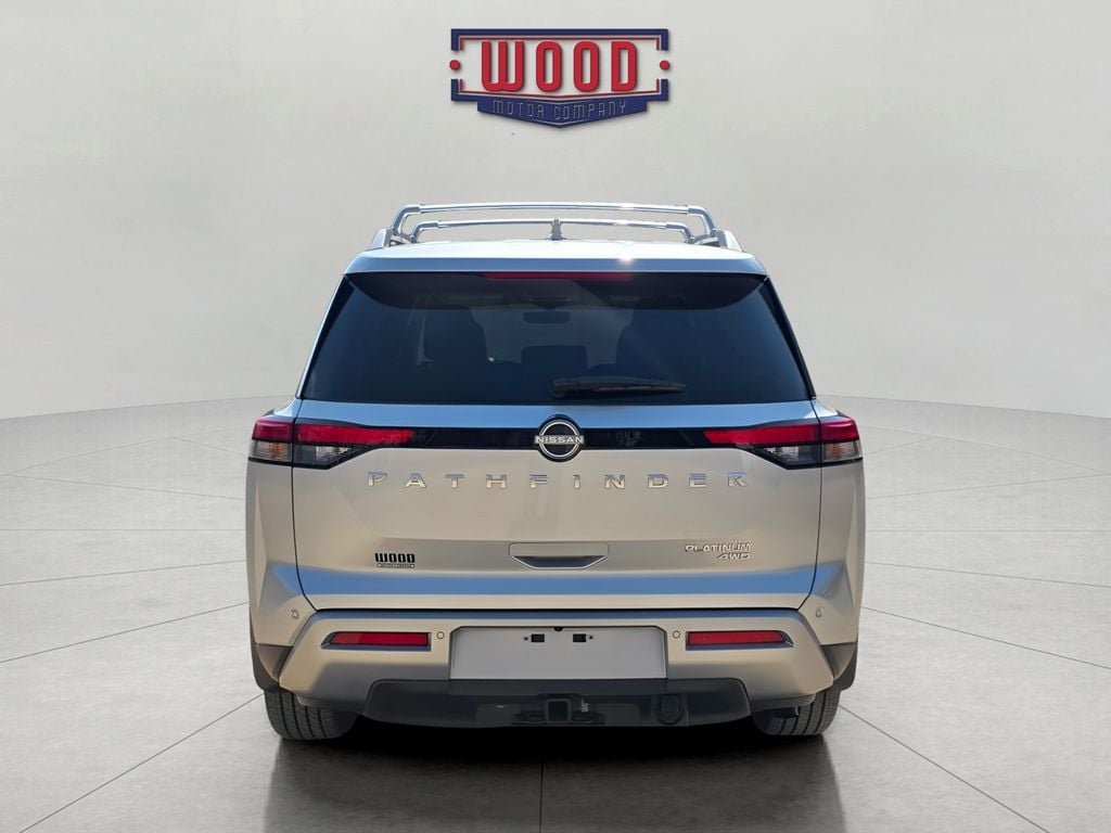 CARFAX One-Owner. Clean CARFAX. Pathfinder Platinum, 4D Sport Utility, 3.5L V6 DOHC, 9-Speed Automatic, 4WD, Brilliant Silver Metallic, Charcoal w/Semi-Aniline Leather-Appointed Seating Surfaces, 13 Speakers, 3rd row seats: bench, Auto tilt-away steering wheel, Automatic temperature control, Bose Premium Audio System, Climate Controlled Front Bucket Seats, Electronic Stability Control, Exterior Parking Camera Rear, Front Bucket Seats, Front dual zone A/C, Front reading lights, Fully automatic headlights, Garage door transmitter: HomeLink, Heads-Up Display, Heated front seats, Heated rear seats, Heated steering wheel, Illuminated entry, Memory seat, Navigation system: NissanConnect with Navigation and Services, NissanConnect featuring Apple CarPlay and Android Auto, NissanConnect with Navigation and Services, Outside temperature display, Power door mirrors, Power driver seat, Power Liftgate, Power moonroof, Power passenger seat, Power windows, Rear air conditioning, Reclining 3rd row seat, Remote keyless entry, Security system, Semi-Aniline Leather-Appointed Seating Surfaces, Steering wheel memory, Steering wheel mounted audio controls, Telescoping steering wheel, Tilt steering wheel, Turn signal indicator mirrors, Ventilated front seats. Wheels: 20' x 8J Machined Alloy. Brilliant Silver Metallic 2025 Nissan Pathfinder Platinum 4WD 9-Speed Automatic 3.5L V6 DOHC A solid name you can trust... Wood Motor. Recent Arrival! Odometer is 916 miles below market average!