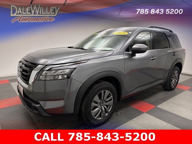 Located at Dale Willey Automotive Used Car and Truck Center / 2800 Iowa St, Lawrence, KS 66046. 2025 Nissan Pathfinder Gun Metallic SV 4WD 9-Speed Automatic 3.5L V6 DOHC Clean vehicle history...No accidents, heated seats, four wheel drive 4WD, Pathfinder SV, 4D Sport Utility, 3.5L V6 DOHC, 9-Speed Automatic, 4WD, Gun Metallic, Charcoal with cloth seating surfaces, alloy wheels, automatic temperature control, dual front impact airbags, dual front side impact airbags, electronic stability control, fully automatic headlights, heated door mirrors, heated front bucket seats, knee airbag, NissanConnect featuring Apple CarPlay and Android Auto, occupant sensing airbag, overhead airbag, power driver seat, power liftgate, radio: AM/FM Audio System with NissanConnect, rear air conditioning, rear parking sensors, rear side impact airbag, remote keyless entry, turn signal indicator mirrors. Wicked Cool! A Must See. Recent Arrival! 21/27 City/Highway MPG All customers qualify for advertised dealer discount. Prices do not include additional fees or costs of closing, including government fees, tags, and taxes. Any finance charges, any dealer administration fees, and dealer add-ons, any emissions testing fees. We strive for 100% accuracy but are not responsible for mistakes in pricing. All prices, specifications, and availability subject to change without notice. Some prices may include rebates that not everyone will qualify for, please contact dealer for details. The Manufacturer’s Suggested Retail Price excludes tax, title, license, dealer fees and optional equipment. Dealer sets final price.