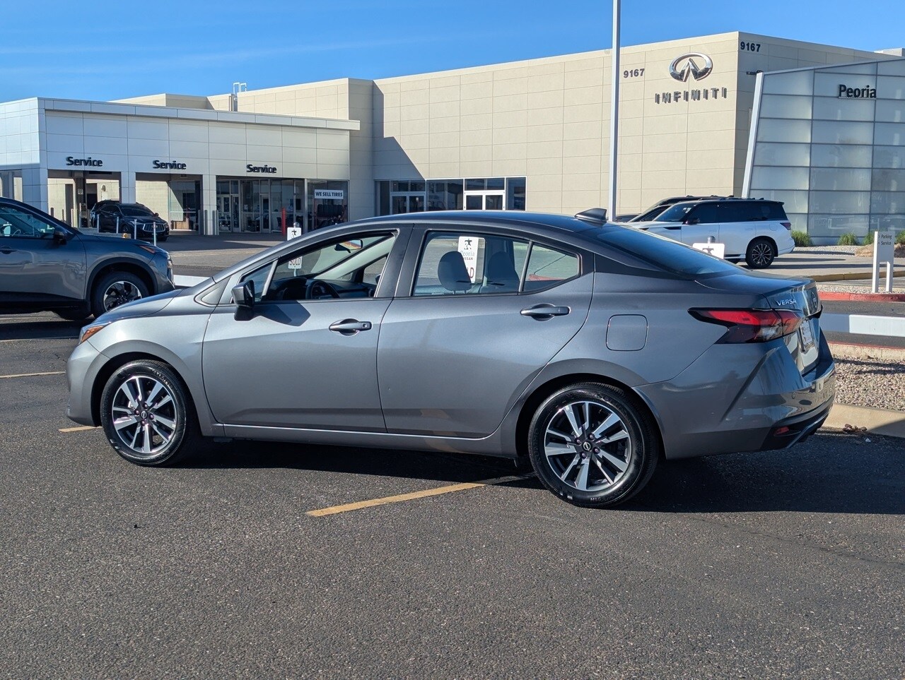CARFAX One-Owner. Gun Metallic 2025 Nissan Versa 1.6 SV 1.6L I4 DOHC 16V FWD. Nissan Certified Details: 7 Year/100,000 Mile Limited Warranty, 24/7 Hour Roadside Assistance, Carfax Vehicle History Report, Plus 1 Year Pre-Paid Maintenance Included. Gas Powered Nissan Models Only. Transferable Warranty. Warranty Deductible: $100. Vehicle History. Limited Warranty: 84 Month/100,000 Mile (whichever occurs first). Roadside Assistance. 167 Point Inspection. We provide 145 point inspection on all our used vehicles. 0% Financing available on this vehicle. It's our mission to faithfully serve our Phoenix-area friends and neighbors, including folks in Sun City, Surprise, Chandler, Avondale, Glendale, Scottsdale, Cave Creek, Mesa, Tempe, Flagstaff, Payson, and Prescott.
