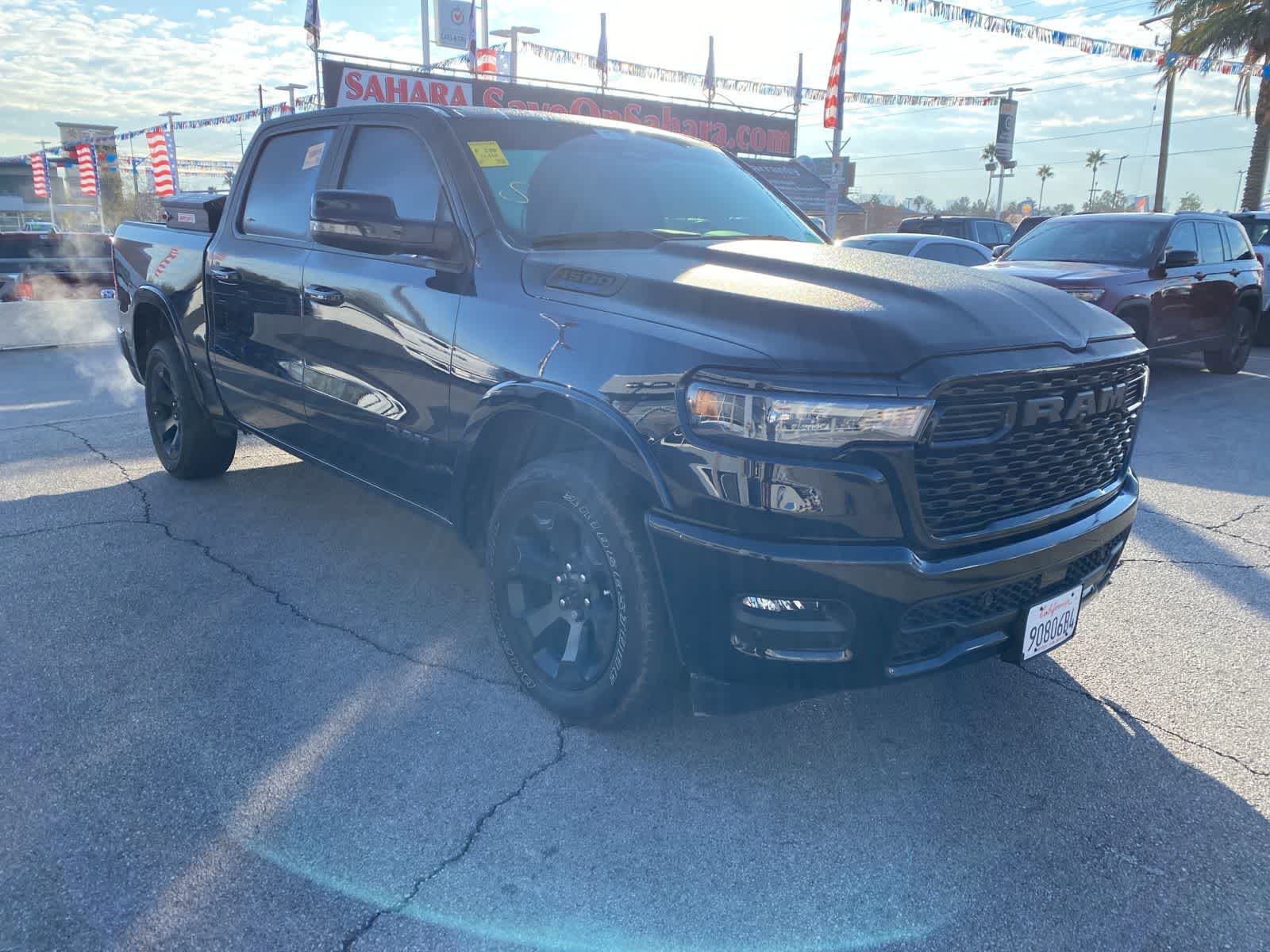 Tough and powerful, our One Owner, Accident Free 2025 Ram 1500 Big Horn Crew Cab 4X2 with the Level 2 Pack is built for bold challenges in Diamond Black Crystal Pearl! Motivated by a 3.6 Liter Pentastar V6 supplying 305hp to an 8 Speed Automatic transmission for robust real-world towing and hauling. Responsive handling inspires confidence in this Rear Wheel Drive truck, which scores nearly 25mpg on the highway. Our Ram also rides with dynamic details like LED lighting, fog lamps, a Class IV receiver hitch, bold fender flares, alloy wheels, and a mighty Ram grille. Level 2 upgrades include multifunction mirrors and bed-mounted outlets powered by a 400W inverter. Our Big Horn cabin is built for comfortable capability with our Level 2 Pack. It adds heated cloth front seats, eight-way power for the driver, a heated leather steering wheel, dual-zone automatic climate control, power-adjustable pedals, a power rear window, a 12-inch touchscreen, a 7-inch driver display, full-color navigation, WiFi compatibility, nine-speaker audio. Apple CarPlay, Android Auto, Bluetooth, and voice control enhance infotainment even further. Ram raises the bar for intelligent safety by supplying front/rear automatic braking, blind-spot monitoring, adaptive cruise control, lane-keeping assistance, a rearview camera, hill start assistance, trailer sway damping, and more. Committed to truck leadership, our 1500 Big Horn is a compelling choice! Save this Page and Call for Availability. We Know You Will Enjoy Your Lithia Sahara Chrysler Dodge Ram L0517 Test Drive Towards Ownership! Must finance with Chrysler Capital for all discounts to be applied.