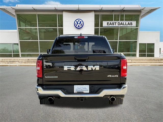 Why buy from East Dallas Volkswagen? We are family-owned and operated with your best interest in mind. With a large selection of new and pre-owned inventory, complimentary car washes, complimentary loan cars for service customers, there's no better place to buy. East Dallas Volkswagen is here for all your vehicle needs! CARFAX One-Owner. Diamond Black Crystal Pearlcoat 2025 Ram 1500 Laramie 4WD 8-Speed Automatic 3.0L I6 one owner, Bluetooth, back up camera, navigation, leather, heated seats, heated ventilated seats, alloy wheels, LED headlights. Recent Arrival! Odometer is 3125 miles below market average!