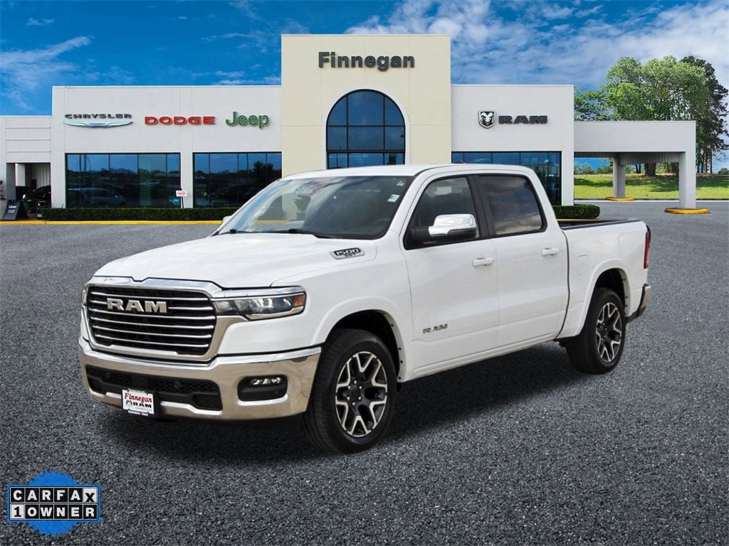 CARFAX One-Owner. Bright White Clearcoat 2025 Ram 1500 Laramie Laramie 4D Crew Cab 3.0L I6 4WD 8-Speed Automatic. Laramie Level 1 Equipment Group (Rain Sensitive Windshield Wipers and Remote Tailgate Release), Quick Order Package 21H Laramie. Finnegan Chrysler Jeep Dodge 26433 Southwest Fwy Rosenberg Texas 77471 832.847.6480.