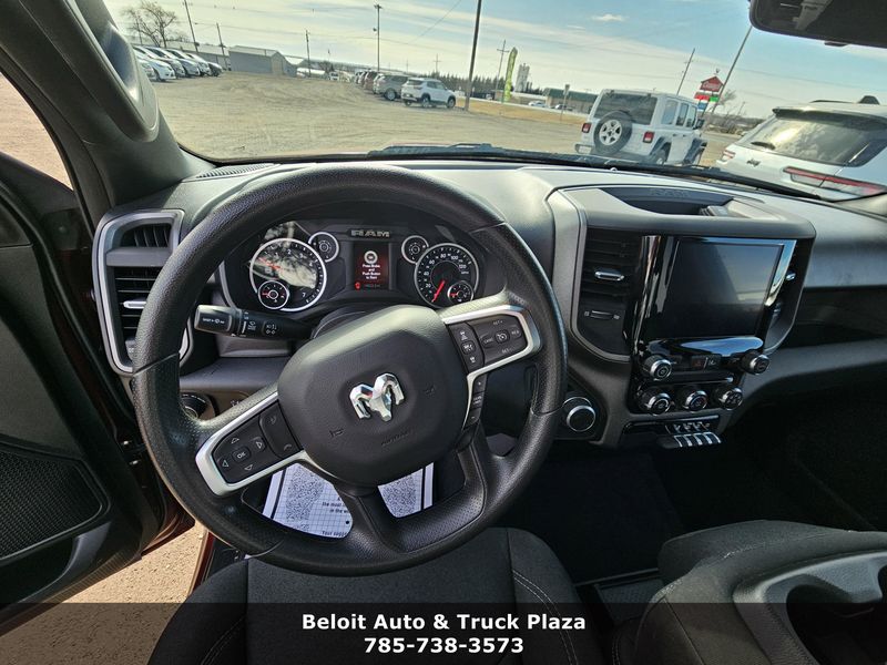 Scores 24 Highway MPG and 19 City MPG! This Ram 1500 delivers a Gas/Electric V-6 3.6 L/220 engine powering this Automatic transmission. Transmission: 8-Speed Automatic (850RE) (STD), Quick Order Package 23A Tradesman -inc: Engine: 3.6L V6 24V VVT eTorque UPG I, Transmission: 8-Speed Automatic (850RE), GVWR: 6,900 LBS (STD). This Ram 1500 features the following options: Engine: 3.6L V6 24V VVT eTorque UPG I (STD), Delmonico Red Pearl Coat, 3.21 Rear Axle Ratio (STD), Wireless Phone Connectivity, Wheels with Hub Covers, Voice Recorder, Variable Intermittent Wipers, Valet Function, Urethane Gear Shifter Material, Transmission: 8-Speed Automatic (850RE). Stop by Beloit Auto and Truck Plaza located at 3133 US Hwy 24, Beloit, KS 67420 for a quick visit and a great vehicle!