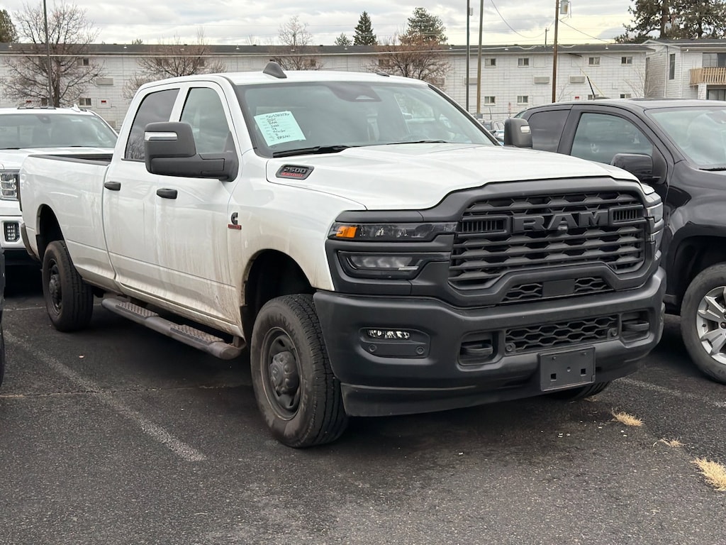 Bright White Clearcoat 2025 Ram 2500 Tradesman 4WD 8-Speed Automatic 6.7L I6. Recent Arrival! Odometer is 2849 miles below market average! Peace of mind. Vehicle history report. Title information. Odometer readings. Accident data (if applicable). Service history. Vehicle usage. Recall information (if applicable). Warranty status. Free CarFax report. A name you can trust. Chevrolet of Bend is dedicated to your satisfaction before, during, and after your purchase. We'll go the extra mile to take care of you.