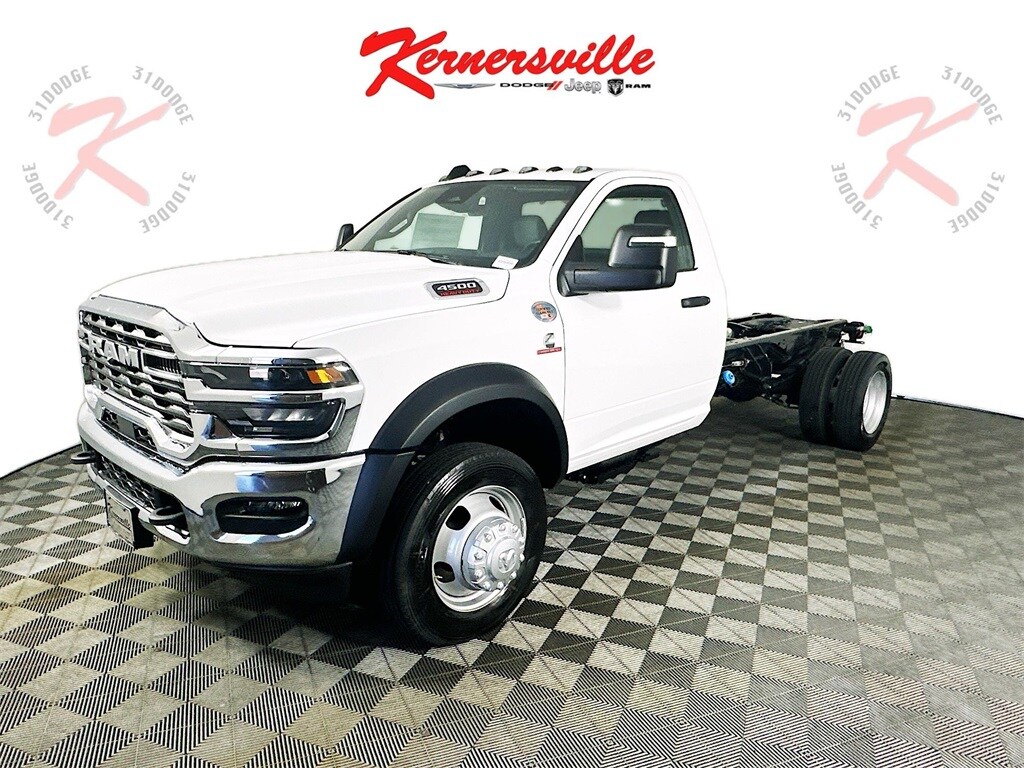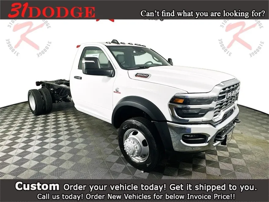Dually! Diesel! Backup Camera! This 2025 RAM 4500 Chassis Tradesman Reg Cab 84"C/A 4X2 Truck includes the following features: Package: 25A, Exterior Color: Bright White, Interior Color: Black / Diesel Gray Heavy Duty Vinyl 40/20/40 Split Bench Seat, Engine: 6.7L I6 Cummins Turbo Diesel Engine, Transmission: 8 Speed TorqueFlite HD Automatic Transmission, Full Speed Forward Collision Warning Plus, Adaptive Cruise Control with Stop, Push Button Start, Sentry Key Theft Deterrent System, Uconnect 5 with 8.4 Inch Touch Screen Display, Integrated Voice Command, Tinted Windshield Glass, Tinted Glass Windows, and much more! Please check the window sticker for a complete list of equipment.