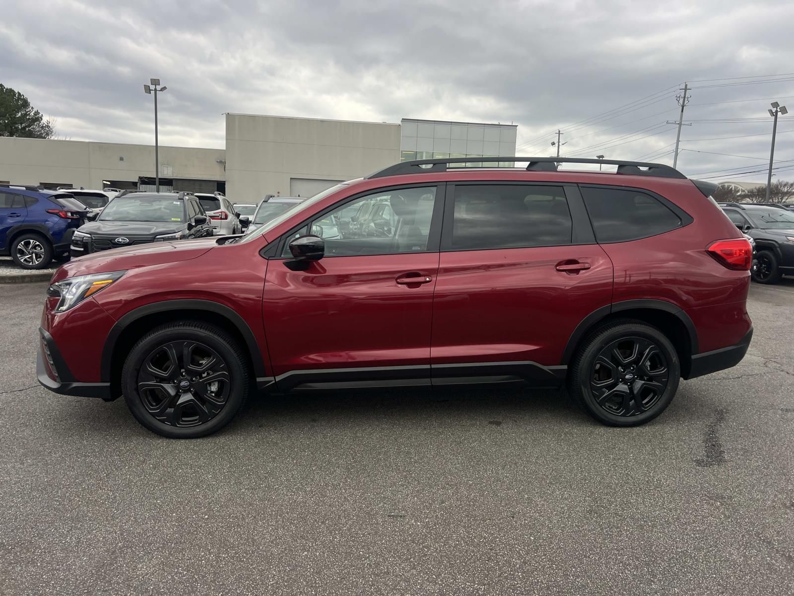 Clean CARFAX. Crimson Red Pearl 2025 Subaru Ascent Onyx Edition AWD Lineartronic CVT 2.4L 4-Cylinder DOHC 16V. New Feature, Back up Camera, Bluetooth, Keyless Entry, Automatic Headlights, Heated Seats, Sunroof/Moonroof, Ascent Onyx Edition, 4D Sport Utility, 2.4L 4-Cylinder DOHC 16V, Lineartronic CVT, AWD, Crimson Red Pearl, Gray w/StarTex Upholstery, 3rd row seats: bench, 4-Wheel Disc Brakes, 6 Speakers, ABS brakes, Air Conditioning, All-Weather Floor Liners, Alloy wheels, AM/FM radio: SiriusXM with 360L, Apple CarPlay & Android Auto, Auto High-beam Headlights, Auto-Dimming Exterior Mirror w/Approach Light, Auto-dimming Rear-View mirror, Automatic temperature control, Brake assist, Bumpers: body-color, Cargo Tray, Compass, Delay-off headlights, Driver door bin, Driver vanity mirror, Dual front impact airbags, Dual front side impact airbags, Electronic Stability Control, Emergency communication system: MySubaru Safety (3-year free trial), Exterior Parking Camera Rear, Four wheel independent suspension, Front anti-roll bar, Front Bucket Seats, Front Center Armrest, Front dual zone A/C, Front fog lights, Front reading lights, Fully automatic headlights, Garage door transmitter: HomeLink, Heated door mirrors, Heated Front Bucket Seats, Heated front seats, Heated steering wheel, Illuminated entry, Knee airbag, Leather Shift Knob, Leather steering wheel, LED Cargo Area Lighting, LED Upgrade, Low tire pressure warning, Occupant sensing airbag, Outside temperature display, Overhead airbag, Overhead console, Panic alarm, Passenger door bin, Passenger vanity mirror, Popular Package #2, Power door mirrors, Power driver seat, Power Liftgate, Power moonroof, Power steering, Power windows, Radio data system, Radio: Subaru 11.6" Multimedia Plus System, Rear air conditioning, Rear anti-roll bar, Rear reading lights, Rear window defroster, Rear window wiper, Reclining 3rd row seat, Remote keyless entry, Security system, Speed control, Speed-sensing steering, Split folding rear seat, Spoiler, Standard Model.