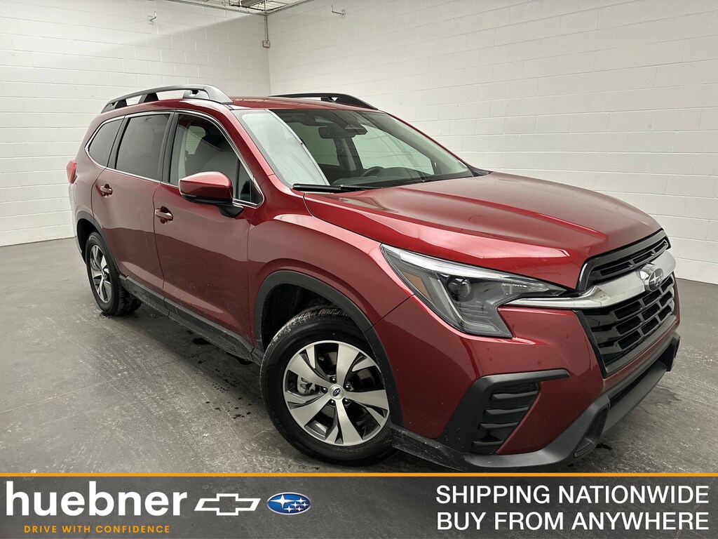 We have on our lot a 2025 Subaru Ascent Premium SUV it’s finished in Crimson Red Pearl, with a Slate Black spill-resistant cloth interior. This Ascent shows just 9,842 miles and is powered by a turbocharged 2.4L Subaru Boxer engine running on gasoline, paired with an 8-speed CVT and Subaru’s confidence-inspiring full-time AWD. Fuel economy checks in at 20 MPG city and 26 MPG highway, making it a smart choice for families who want space and capability without sacrificing efficiency. This Ascent was used as a dealership demo, which means it has been well cared for and professionally maintained. Even better, the next buyer will be the first name on the title, giving you new-car ownership benefits while saving a significant amount compared to buying brand new. This service loaner is in very good overall condition, and the remaining factory bumper-to-bumper warranty still in place, this is an opportunity to get nearly new peace of mind at a used-car value. Buyers may also qualify for tax savings when trading in a vehicle, helping stretch your budget even further. Behind the wheel, the Ascent feels solid, calm, and ready for whatever the day brings. The elevated driving position gives you a commanding view of the road, while Subaru Symmetrical All-Wheel Drive and X-MODE traction management quietly work to keep you composed in rain, snow, or rougher road conditions. It’s the kind of SUV that makes school drop-offs, highway commutes, and weekend road trips feel equally effortless. Inside, the cabin is built for real family life. Heated front seats bring instant comfort on cold mornings, and tri-zone automatic climate control lets everyone dial in their own comfort across all three rows. The power driver’s seat, leather-wrapped steering wheel, and quiet ride make long drives feel relaxed, while second-row seating, a spacious third row, and fold-flat cargo flexibility easily handle carpools, vacations, or weekend projects. Technology is front and center with Subaru’s large 11.6-inch Multimedia Plus touchscreen. Wireless Apple CarPlay and Android Auto keep navigation, music, and messages seamless, while voice controls and steering-wheel buttons help you stay focused. Adaptive cruise control with lane centering smooths out highway drives, subtly adjusting to traffic so longer trips feel far less tiring. Safety is a core strength of the Ascent. Subaru EyeSight driver-assist technology includes pre-collision braking, lane keep assist, blind spot monitoring, rear cross-traffic alert, reverse automatic braking, and a backup camera. These features are always on guard, adding confidence every time your family climbs aboard.