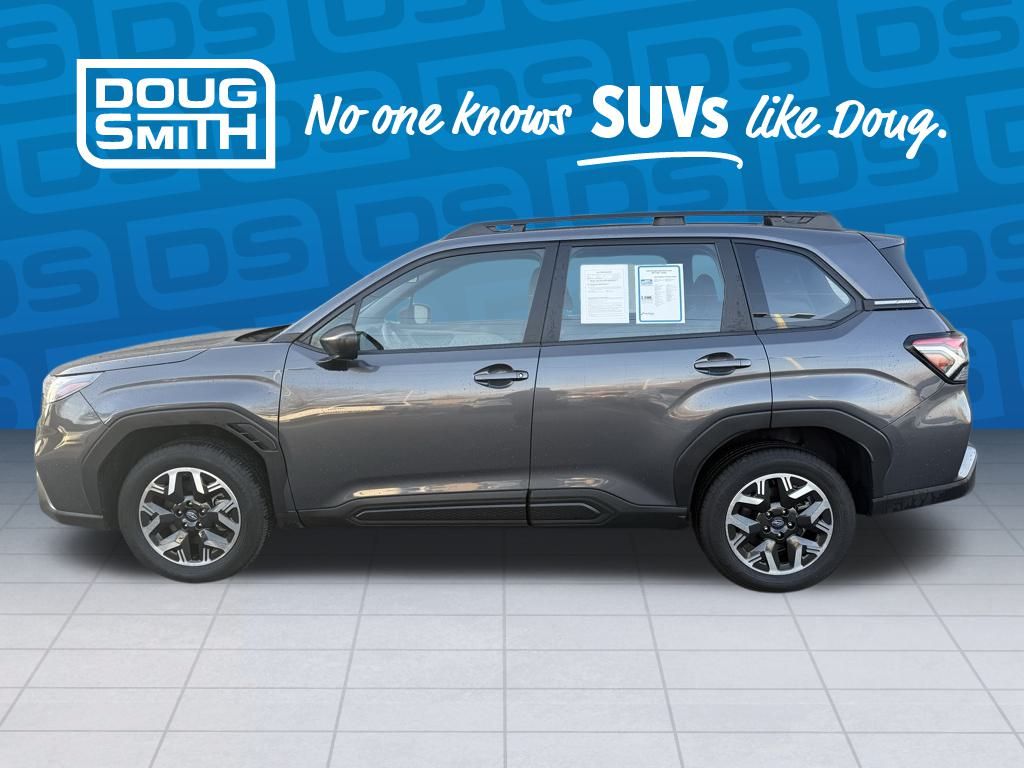 Recent Arrival! 2025 Subaru Forester Magnetite Gray Metallic AWD Lineartronic CVT 2.5L 4-Cylinder DOHC 16V. Most of our Used vehicles come with a 3 month 3,000 mile limited powertrain warranty. See us for complete details. Limited powertrain warranty included on used vehicles less than 10 years old and under 125,000 miles. Peace of mind. Vehicle history report. Title information. Odometer readings. Accident data (if applicable). Service history. Vehicle usage. Recall information (if applicable). Warranty status. Free AutoCheck report. A name you can trust. Doug Smith Mitsubishi is dedicated to your satisfaction before, during, and after your purchase. We'll go the extra mile to take care of you.