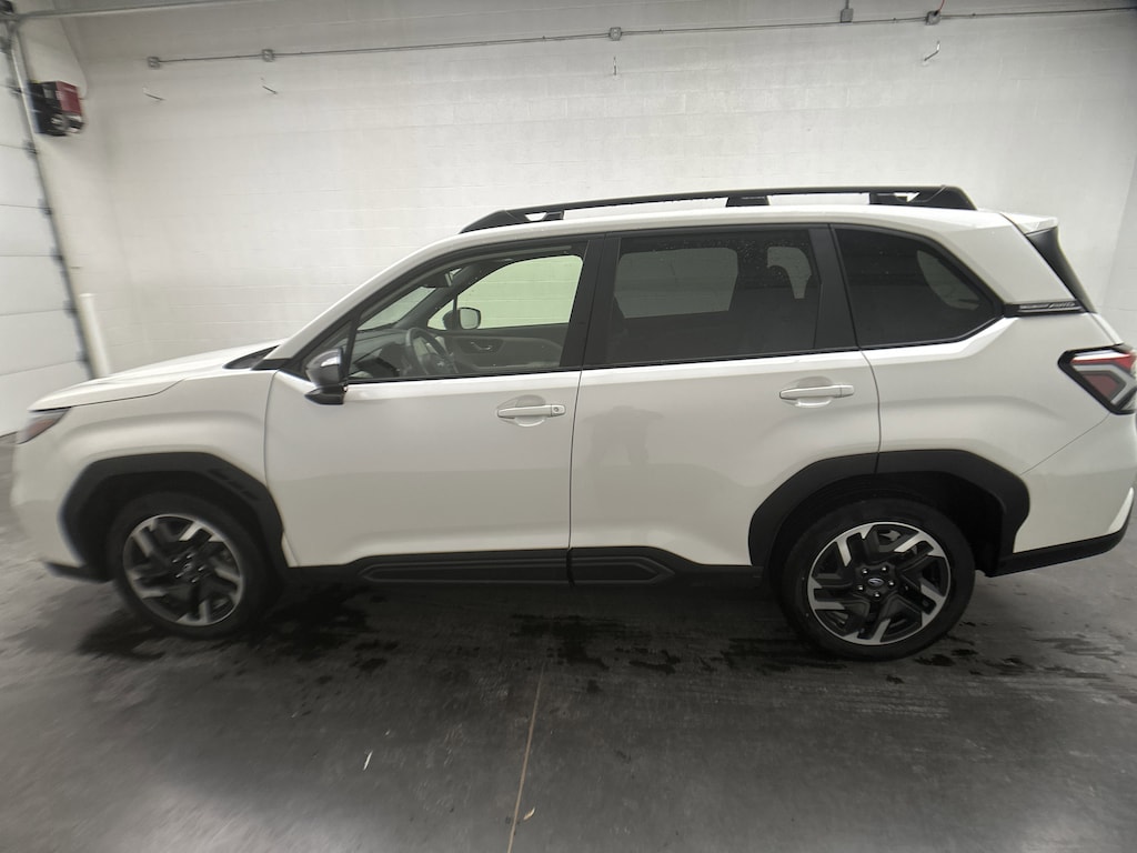 We've just taken in a 2025 Subaru Forester Limited SUV - it's finished in Crystal White Pearl, with a Gray leather-trimmed interior that feels clean, modern, and welcoming the moment you open the door. This Forester currently has 31,982 miles and is powered by Subaru's dependable 2.5L 4-cylinder gasoline engine paired with an 8-speed CVT with overdrive. You'll enjoy confident All-Wheel Drive traction and an impressive 26 MPG city and 33 MPG highway, making this a smart choice for both daily commuting and weekend escapes. This Forester has had just 1 previous owner, has been well cared for, and is rated in Very Good condition. Even better, it still carries the remaining factory bumper-to-bumper warranty, adding peace of mind every time you head out on the road. From errands around town to long family road trips, this SUV is designed to make life easier, safer, and more enjoyable. Slide into the driver's seat and you'll immediately feel why the Forester Limited is such a favorite among active families and adventure-minded drivers. The elevated seating position gives you a clear, commanding view of the road, while Subaru's Symmetrical All-Wheel Drive and X-MODE dual-mode system inspire confidence when weather or terrain gets unpredictable. Whether it's rain-soaked highways, snow-covered back roads, or gravel trails to your favorite campsite, this Forester feels planted and reassuring. Inside, comfort and technology take center stage. The perforated leather-trimmed seats with blue stitching feel upscale without being overdone, and the heated front seats and heated leather steering wheel add instant comfort on cold mornings. Dual-zone automatic climate control keeps everyone comfortable, while rear seat vents make sure passengers stay relaxed on longer drives. The panoramic power moonroof floods the cabin with natural light, making every drive feel open and airy. At the heart of the dash is Subaru's large 11.6-inch touchscreen with built-in navigation, wireless Apple CarPlay and Android Auto, and voice-activated controls that keep everything intuitive and within reach. The Harman Kardon premium audio system delivers rich, clear sound that turns everyday drives into something you actually look forward to. Add in the hands-free power liftgate, smart key access with push-button start, and power-adjustable front seats, and it's easy to see how seamlessly this Forester fits into a busy lifestyle. Safety is where Subaru truly shines, and this Forester Limited is loaded with advanced driver-assist features. EyeSight technology helps you glide effortlessly through traffic with adaptive cruise control, lane centering, and lane keep assist. Blind spot monitoring, rear cross-traffic alert, reverse automatic braking, and a backup camera add confidence in tight parking lots and busy neighborhoods. It's the kind of safety that quietly works in the background, letting you focus on enjoying the drive. With strong fuel economy, versatile cargo space, roof rails ready for bikes or kayaks, and a refined interior that feels just as good on a Monday morning as it does on a weekend getaway, this 2025 Subaru Forester Limited checks all the right boxes.