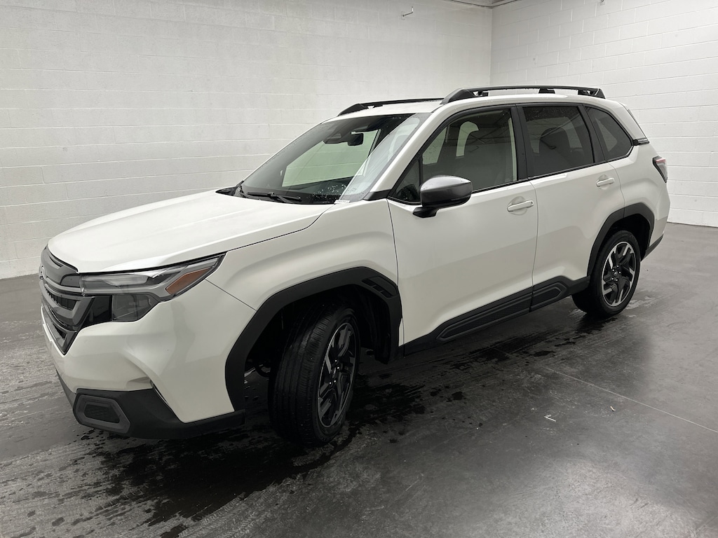 We've just taken in a 2025 Subaru Forester Limited SUV - it's finished in Crystal White Pearl, with a Gray leather-trimmed interior that feels clean, modern, and welcoming the moment you open the door. This Forester currently has 31,982 miles and is powered by Subaru's dependable 2.5L 4-cylinder gasoline engine paired with an 8-speed CVT with overdrive. You'll enjoy confident All-Wheel Drive traction and an impressive 26 MPG city and 33 MPG highway, making this a smart choice for both daily commuting and weekend escapes. This Forester has had just 1 previous owner, has been well cared for, and is rated in Very Good condition. Even better, it still carries the remaining factory bumper-to-bumper warranty, adding peace of mind every time you head out on the road. From errands around town to long family road trips, this SUV is designed to make life easier, safer, and more enjoyable. Slide into the driver's seat and you'll immediately feel why the Forester Limited is such a favorite among active families and adventure-minded drivers. The elevated seating position gives you a clear, commanding view of the road, while Subaru's Symmetrical All-Wheel Drive and X-MODE dual-mode system inspire confidence when weather or terrain gets unpredictable. Whether it's rain-soaked highways, snow-covered back roads, or gravel trails to your favorite campsite, this Forester feels planted and reassuring. Inside, comfort and technology take center stage. The perforated leather-trimmed seats with blue stitching feel upscale without being overdone, and the heated front seats and heated leather steering wheel add instant comfort on cold mornings. Dual-zone automatic climate control keeps everyone comfortable, while rear seat vents make sure passengers stay relaxed on longer drives. The panoramic power moonroof floods the cabin with natural light, making every drive feel open and airy. At the heart of the dash is Subaru's large 11.6-inch touchscreen with built-in navigation, wireless Apple CarPlay and Android Auto, and voice-activated controls that keep everything intuitive and within reach. The Harman Kardon premium audio system delivers rich, clear sound that turns everyday drives into something you actually look forward to. Add in the hands-free power liftgate, smart key access with push-button start, and power-adjustable front seats, and it's easy to see how seamlessly this Forester fits into a busy lifestyle. Safety is where Subaru truly shines, and this Forester Limited is loaded with advanced driver-assist features. EyeSight technology helps you glide effortlessly through traffic with adaptive cruise control, lane centering, and lane keep assist. Blind spot monitoring, rear cross-traffic alert, reverse automatic braking, and a backup camera add confidence in tight parking lots and busy neighborhoods. It's the kind of safety that quietly works in the background, letting you focus on enjoying the drive. With strong fuel economy, versatile cargo space, roof rails ready for bikes or kayaks, and a refined interior that feels just as good on a Monday morning as it does on a weekend getaway, this 2025 Subaru Forester Limited checks all the right boxes.