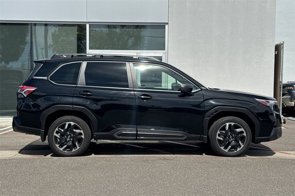This 2025 Subaru Forester Limited was acquired the other day from our Service Department! This Forester was one of our Service Loaners which has been meticulously maintained and only has 7,696 miles on it! This Forester is the Beautiful Crystal Black Silica with Black Leather interior and is ready for a new home so come on down and take it out for a spin. This Beauty has had and passed an extensive 182 Multi-Point Inspection conducted by our factory certified Subaru technicians. All necessary services have been done for the appropriate mileage interval including ELO GPS installed, cabin air filter, engine air filter, oil & filter change. This 2025 Subaru Forester Limited comes with 2 sets of keys: a clean CARFAX and is a one-owner vehicle that is Subaru Certified! This 2025 Subaru Forester Limited comes with equipped with power panoramic moonroof, 18" alloy wheels, leather interior, power liftgate, navigation system, remote keyless entry, heated steering wheel, illuminated entry, steering wheel mounted audio controls, power driver seat, spoiler, rearview back up camera along with much more. Buy with confidence as each of our pre-owned vehicles come equipped with a 90-Day/3000 Mile warranty as well as Car Doc, our exclusive maintenance and membership program. The included Car Doc Program comes with 6 complimentary oil changes and 6 complimentary tire rotations for the first two years of car ownership. Also, this vehicle is available to upgrade to a 3 Year or 5 Year Car Doc along with other perks to give you peace of mind when it comes to your driving experience. It's just what the doctor ordered! Whether you have good credit, bad credit or no credit get pre-approved today.