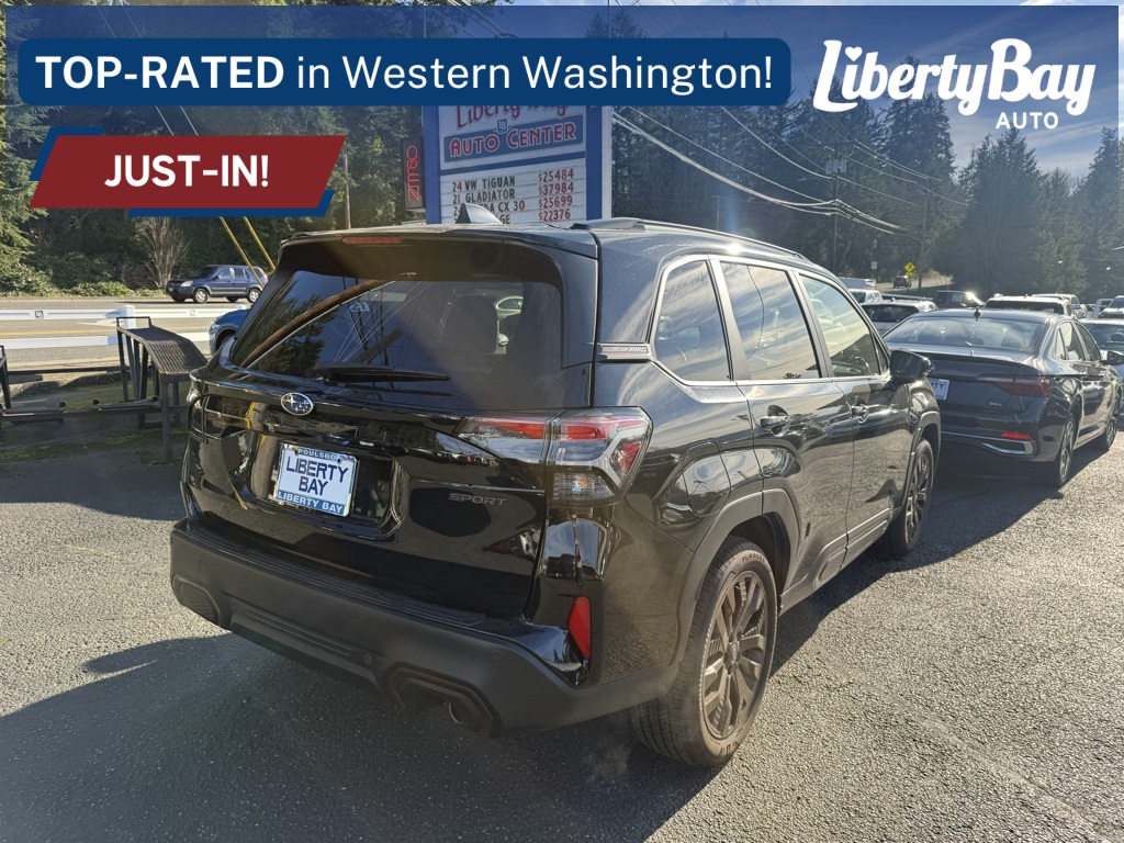2025 Subaru Forester Sport. Recent Arrival! 25/32 City/Highway MPG Odometer is 4583 miles below market average! Truly, Liberty Bay Auto Center is a one-stop shop for all your automotive needs. We also have a dedicated service department on site. There our team of experts work on a variety of vehicles using the highest-quality OEM parts, innovative software and industry leading equipment. Our team of experts are highly trained and can tackle anything your vehicle might need, from repair to maintenance. Stop by and see why Liberty Bay is the best place to buy the best car.