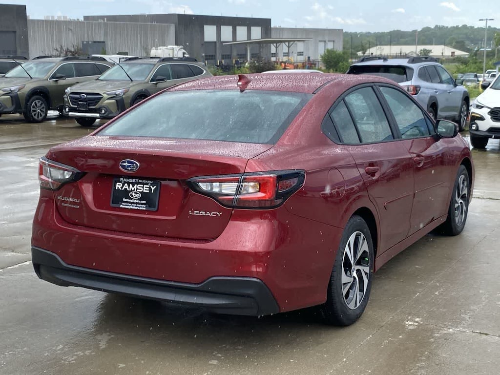Discover the perfect blend of style, performance, and versatility in the 2025 Subaru Legacy Premium. This meticulously maintained, low-mileage vehicle is a true standout in the midsize sedan segment, offering an exceptional driving experience and a wealth of premium features that will elevate your daily commute. Tailored to your unique preferences, this Legacy Premium boasts a striking Crimson Red Pearl exterior, complemented by sleek body side molding and a stylish rear bumper applique. Under the hood, the powerful 2.5L 4-cylinder DOHC 16V engine, paired with Subarus renowned Lineartronic CVT and Symmetrical All-Wheel Drive, delivers a smooth and efficient ride, with an impressive 27 city / 35 highway MPG. Step inside the spacious cabin and experience the premium comfort of heated front bucket seats, a leather-wrapped steering wheel, and dual-zone automatic climate control. The advanced 11.6 Multimedia Plus System seamlessly integrates with your smartphone via Apple CarPlay and Android Auto, keeping you connected and entertained on the go. Subarus commitment to safety is evident in the Legacy Premiums comprehensive suite of advanced driver-assistance technologies, including Eyesight Driver Assist, Blind Spot Detection, and Rear Cross-Traffic Alert, providing you and your loved ones with peace of mind on every journey. As a Subaru Certified Pre-Owned vehicle, this 2025 Legacy Premium has undergone a rigorous 152-point inspection, ensuring it meets the highest standards of quality and reliability. Backed by a comprehensive warranty and 24/7 roadside assistance, you can drive with confidence, knowing your investment is protected. Discover the exceptional value and uncompromising quality of the 2025 Subaru Legacy Premium. Schedule a test drive today and experience the difference for yourself.