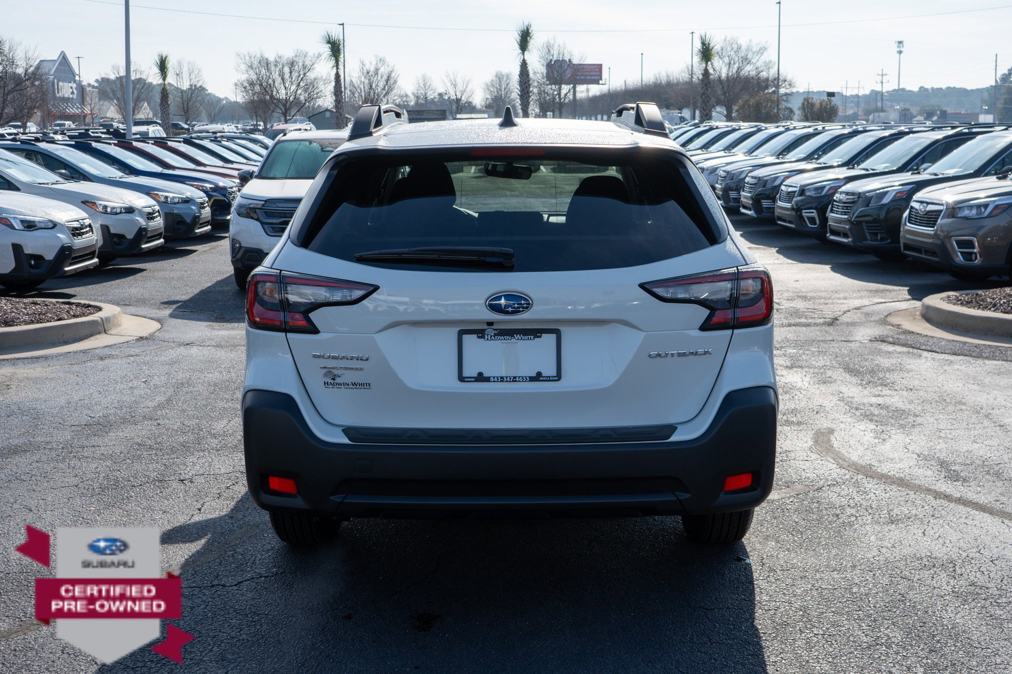 Only 5 Miles! Scores 32 Highway MPG and 26 City MPG! Dealer Certified Pre-Owned. This Subaru Outback delivers a Regular Unleaded H-4 2.5 L/152 engine powering this Variable transmission. Slate Black, cloth upholstery with silver or ivory stitching, popular package #1 with Auto-Dimming Mirror with Compass & HomeLink, Auto-Dimming Exterior Mirror with Approach Light, All-Weather Floor Liners, Rear Bumper Cover, LED Upgrade, Crystal White Pearl. This Subaru Outback features the following options: Wireless Phone Connectivity, Window Grid and Roof Mount Antenna, Wheels: 17 x 7J Black Aluminum-Alloy with machine finish, Variable Intermittent Wipers with Heated Wiper Park, Valet Function, Turn-By-Turn Navigation Directions, Trip Computer, Transmission with steering wheel paddle-shift control switches, 8-speed manual shift mode and X-MODE: Hill Descent Control (HDC), Transmission with driver selectable mode and oil cooler. Stop by today. A short visit to Hadwin White Buick GMC Subaru located at 2325 E. Highway 501, Conway, SC 29526 can get you a dependable Outback today!