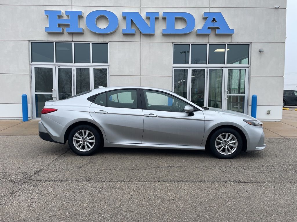 2025 Toyota Camry LE 2.5L 4-Cylinder 16V DOHC FWD This vehicle comes well-equipped with these 2.5L 4-Cylinder 16V DOHC, Cloth, 4-Wheel Disc Brakes, 6 Speakers, ABS brakes, Air Conditioning, Alloy wheels, AM/FM radio: SiriusXM, Apple CarPlay/Android Auto, Auto High-beam Headlights, Automatic temperature control, Brake assist, Bumpers: body-color, Delay-off headlights, Driver door bin, Driver vanity mirror, Dual front impact airbags, Dual front side impact airbags, Electronic Stability Control, Emergency communication system: Safety Connect (up to 10-year trial subscription), Exterior Parking Camera Rear, Fabric Seat Trim, Four wheel independent suspension, Front anti-roll bar, Front Bucket Seats, Front Center Armrest, Front dual zone A/C, Front reading lights, Fully automatic headlights, Heated door mirrors, Illuminated entry, Knee airbag, Low tire pressure warning, Occupant sensing airbag, Outside temperature display, Overhead airbag, Overhead console, Panic alarm, Passenger door bin, Passenger vanity mirror, Power door mirrors, Power steering, Power windows, Radio data system, Radio: Toyota Audio Multimedia w/8" Touchscreen, Rear anti-roll bar, Rear seat center armrest, Rear side impact airbag, Rear window defroster, Remote keyless entry, Security system, Speed control, Speed-sensing steering, Split folding rear seat, Steering wheel mounted audio controls, Telescoping steering wheel, Tilt steering wheel, Traction control, Trip computer, Turn signal indicator mirrors, Variably intermittent wipers, and Wheels: 16" Silver-Finished Alloy. Odometer is 4318 miles below market average!