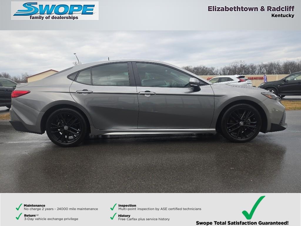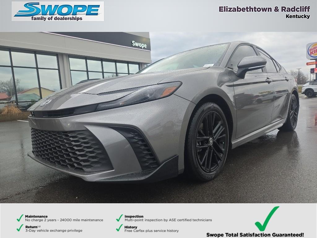 Discover exceptional value with this 2025 Toyota Camry Hybrid SE in Radcliff, KY — the best-priced Toyota Camry Hybrid available. With only 11,361 miles, this low-mileage FWD sedan pairs fuel-sipping efficiency with refined comfort thanks to its 4-cylinder, 2.5L Full Hybrid Electric (FHEV) powertrain. Ideal for daily commuting or weekend road trips, the Toyota Camry Hybrid SE delivers smooth acceleration, excellent gas mileage, and reliable Toyota engineering. This 2025 Toyota Camry Hybrid SE merges modern features with practical design: a spacious interior, responsive handling, and hybrid efficiency that reduces fuel stops and ownership costs. Whether you're navigating city streets or cruising the interstate, this Camry offers a quiet, composed ride with the dependability Toyota owners expect. Located in Radcliff, KY, this Toyota Camry Hybrid SE is competitively priced to move — don't miss your chance to own a low-mileage, feature-rich hybrid that represents the best price in the market. Schedule a test drive today and experience the comfortable, efficient performance of this outstanding Toyota Camry Hybrid SE.