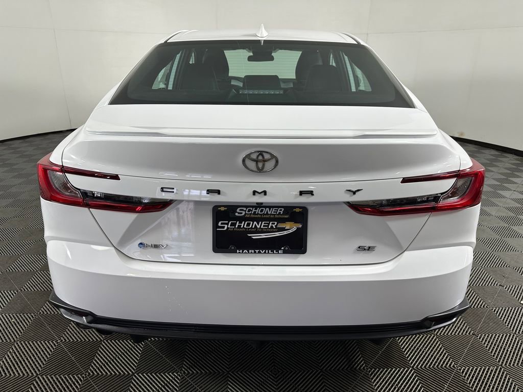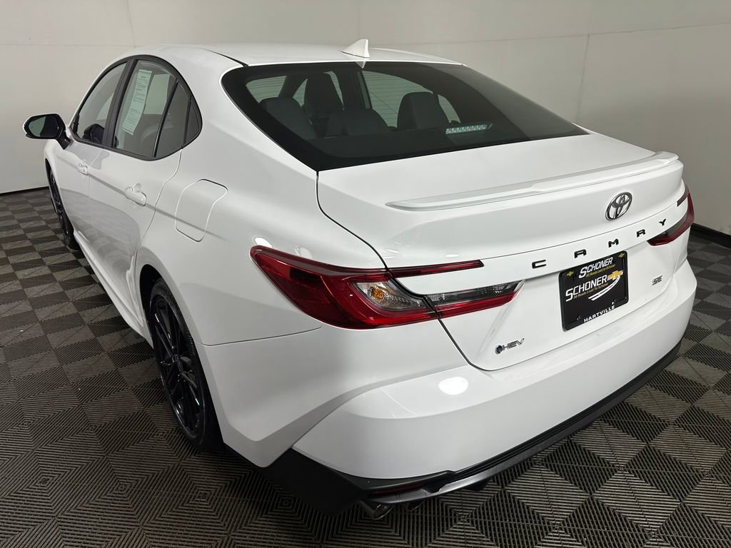 The 2025 Toyota Camry SE redefines what it means to drive a midsize sedan by blending sporty design, hybrid efficiency, and cutting-edge technology into one sleek package. Powered by Toyota’s 5th Generation Hybrid System featuring a 2.5L 4-cylinder engine delivering an impressive 225 combined net horsepower, this Camry SE offers responsive performance through an electronically controlled CVT with paddle shifters, complemented by a sport-tuned suspension and dual chrome-tipped exhaust for a more engaging drive. Its bold exterior stands out with 18-inch black-finished alloy wheels, a black sport mesh grille, rear spoiler, sport diffuser, and striking Bi-LED lighting. Inside, the cabin delivers comfort and connectivity with SofTex-trimmed sport seating, an 8-way power driver seat, dual-zone climate control, wireless smartphone integration, Qi charging, and a modern digital gauge display. Equipped with Toyota Safety Sense 3.0 and Blind Spot Monitoring, the Camry SE adds advanced confidence to everyday driving. Built in Georgetown, Kentucky and offering hybrid performance without compromise, this Camry SE is the perfect balance of efficiency, athletic style, and smart technology.