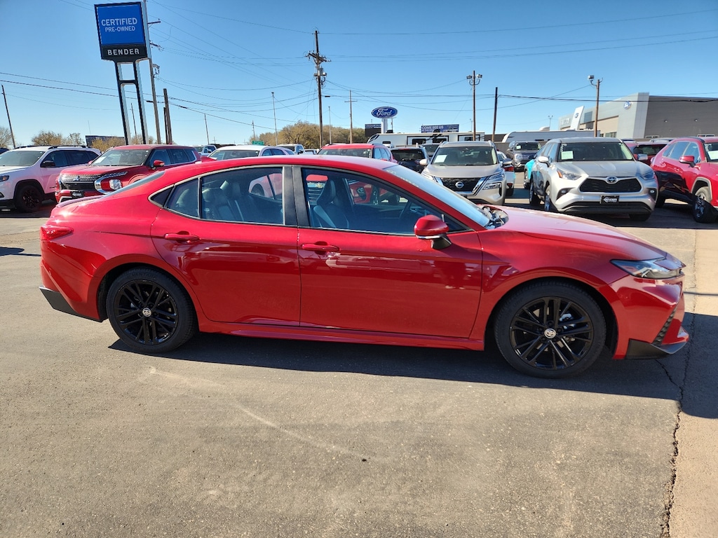 Red 2025 Toyota Camry SE FWD eCVT 2.5L 4-Cylinder 16V DOHC Black Cloth. 48/47 City/Highway MPG. Bender Nissan is dedicated to your satisfaction before, during, and after your purchase. We'll go the extra mile to take care of you.