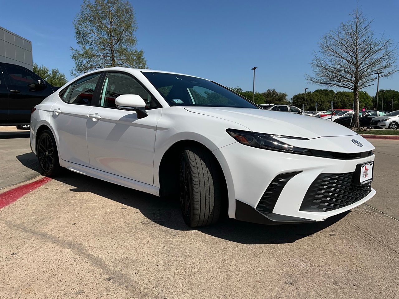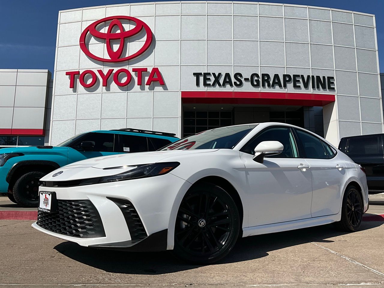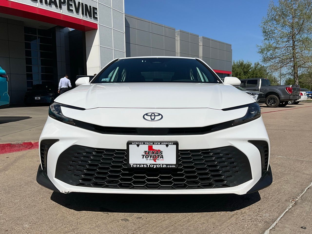 Located in Grapevine, just across from DFW Airport, Texas Toyota of Grapevine makes it easy to shop a top-tier selection of pre-owned vehicles. As the #1 pre-owned Toyota dealership in Dallas–Fort Worth, we're committed to a straightforward buying experience and great value on every unit. This 2025 Toyota Camry SE is an exceptional choice for the discerning driver. Boasting a sleek white exterior and a host of advanced features, this Camry is poised to exceed your expectations. Powered by a fuel-efficient 2.5L 4-cylinder engine paired with an eCVT transmission, this Camry delivers an impressive 48 MPG in the city and 47 MPG on the highway, making it an exceptional value proposition. The spacious interior, featuring SofTex and fabric seating, offers exceptional comfort and style. Beyond the impressive performance and efficiency, this Camry is loaded with advanced safety features, including a Backup Camera, Blind Spot Monitor with Rear Cross-Traffic Alert, and Toyota's renowned Pre Collision System with Pedestrian Detection. The Lane Departure Alert with Sway Warning and Dynamic Radar Cruise Control further enhance the driving experience, providing added peace of mind on the road. Connectivity is a breeze with the intuitive 8-inch touchscreen infotainment system, which seamlessly integrates with your smartphone via Apple CarPlay and Android Auto. The remote start feature and LED accent lighting add a touch of modern convenience and style to this exceptional Camry. With just 22,239 miles on the odometer, this 2025 Toyota Camry SE represents an outstanding value. Backed by Toyota's reputation for reliability and quality, this vehicle is sure to provide years of dependable service. Visit Texas Toyota of Grapevine across from DFW Airport and see this vehicle in person today. We offer upfront, haggle-free pricing so you can shop with confidence and move quickly when you find the right fit.