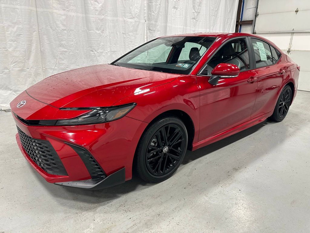 Balance of Factory Warranty, Bluetooth, 2.5L 4-Cylinder 16V DOHC, FWD, Supersonic Red, Black w/SofTex & Fabric Seat Trim, AM/FM radio: SiriusXM, Apple CarPlay/Android Auto, Auto High-beam Headlights, Automatic Headlights, Backup Camera, Front dual zone A/C, Power driver seat, Power windows, Radio: Toyota Audio Multimedia w/8" Touchscreen, Remote keyless entry, Wheels: 18" Black-Finished Alloy. CARFAX One-Owner. Clean CARFAX. 2025 Toyota Camry SE FWD eCVT 2.5L 4-Cylinder 16V DOHC. Odometer is 13173 miles below market average! 48/47 City/Highway MPG. Budget Car Sales, wholesaling to the public! Call us to make an appointment so we can make sure to get your car ready.