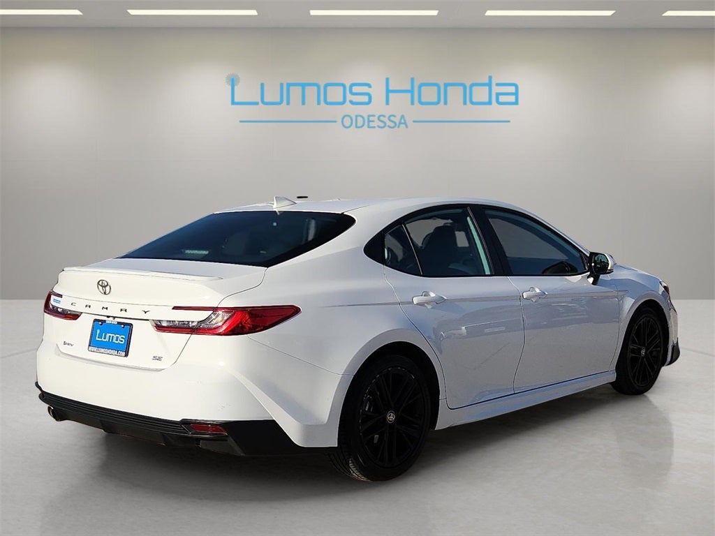 White 2025 Toyota Camry SE 4D Sedan FWD eCVT 2.5L 4-Cylinder 16V DOHC. Lumos Honda of Odessa, Texas is proud to present you with this 2025 Toyota Camry SE that is loaded with the following Factory Options. Lumos Honda is a Permian Basin based Used Car Superstore located in the Odessa, Texas. If you do not see what you are looking for. Please contact our acquisition specialist and we will find the ride of your dreams.