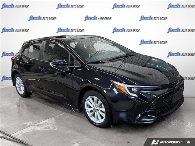Discover the 2025 Toyota Corolla Hatchback SE: Where Style Meets Innovation in a Compact Package, Perfect for the Modern Canadian Urban Explorer. Drive into the future with the 2025 Toyota Corolla Hatchback SE, a used gem that combines sleek design and advanced technology for the discerning Canadian driver. The Midnight Black Metallic exterior exudes sophistication, while the 4-cylinder engine paired with a 10-speed automatic/CVT transmission ensures a smooth and responsive ride. This compact 4-door hatchback is designed for those who appreciate both style and substance. Safety is paramount, with features like Automatic Highbeams, Lane Keeping Assist, and Front Collision Mitigation providing peace of mind on every journey. The Cross-Traffic Alert and Evasion Assist enhance your driving confidence, making city navigation a breeze. Inside, smart device integration and adaptive cruise control offer convenience and connectivity at your fingertips. The back-up camera and integrated turn signal mirrors ensure you’re always aware of your surroundings. For those who value comfort, the Corolla Hatchback SE offers adjustable bucket seats and climate control, making every drive enjoyable. The rear spoiler adds a sporty touch, while the all-season tires are ready for Canada’s diverse weather conditions. Experience the perfect blend of practicality and performance with this remarkable vehicle.