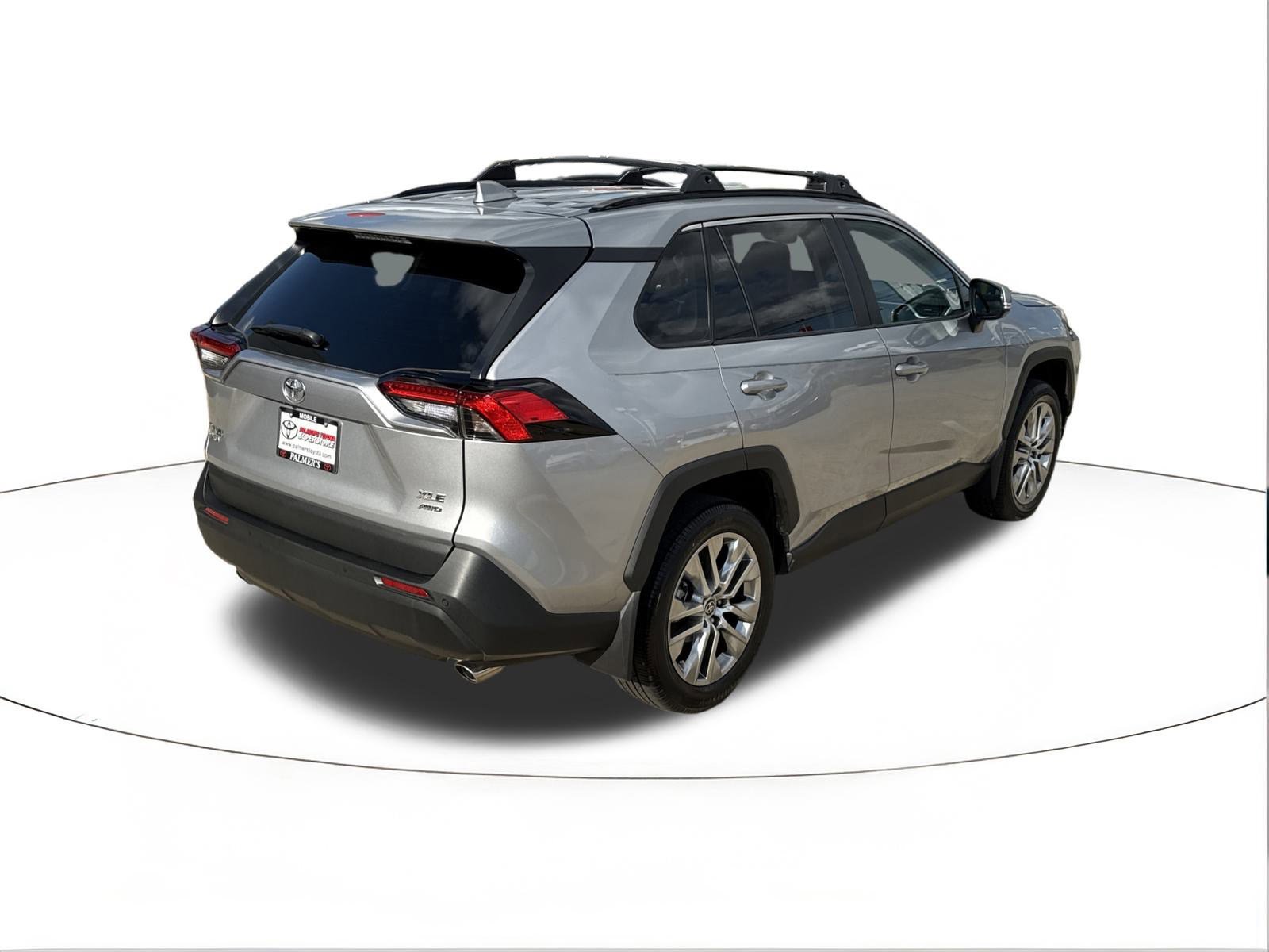 Silver Sky 2025 Toyota RAV4 XLE Premium AWD 8-Speed Automatic 2.5L 4-Cylinder DOHC Dual VVT-i AWD, Black Artificial Leather, 3 Spoke Leather Heated Steering Wheel, 3 Spoke Leather Steering Wheel, 4-Wheel Disc Brakes, 6 Speakers, ABS brakes, Advanced Technology Package, Air Conditioning, Alloy wheels, AM/FM radio: SiriusXM, Anti-Theft System, Auto High-beam Headlights, Automatic temperature control, Blind Spot Monitor w/Lane Change Assist, Brake assist, Bumpers: body-color, Delay-off headlights, Driver door bin, Driver Seat w/2-Position Memory Function, Driver vanity mirror, Dual front impact airbags, Dual front side impact airbags, Electronic Inside Rear View Mirror, Electronic Stability Control, Emergency communication system: Safety Connect (10-year trial), Exterior Parking Camera Rear, Four wheel independent suspension, Front anti-roll bar, Front Bucket Seats, Front Center Armrest, Front dual zone A/C, Front reading lights, Front Seat Heating, Fully automatic headlights, Heated door mirrors, Illuminated entry, Intelligent Clearance Sonar, Knee airbag, Leather Shift Knob, Leather steering wheel, Low tire pressure warning, Mudguards (TMS), Occupant sensing airbag, Outside temperature display, Overhead airbag, Overhead console, Panic alarm, Parking Support Alert & Brake, Passenger door bin, Passenger vanity mirror, Power door mirrors, Power driver seat, Power Liftgate, Power moonroof, Power steering, Power windows, Radio data system, Radio: AM/FM/XM Audio System, Rear anti-roll bar, Rear seat center armrest, Rear window defroster, Rear window wiper, Remote keyless entry, Roof Rack Cross Bars (TMS), SofTex Seat Trim, Speed control, Speed-sensing steering, Split folding rear seat, Spoiler, Steering wheel mounted audio controls, Tachometer, Telescoping steering wheel, Tilt steering wheel, Traction control, Trip computer, Turn signal indicator mirrors, Variably intermittent wipers, Weather Package, Wheels: 19 5-Spoke Silver Alloy, Wireless Phone Charger.