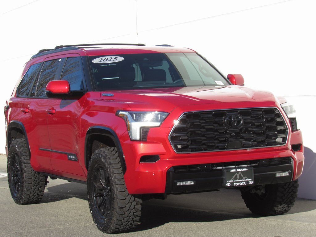 Recent Arrival! Carfax One-Owner. Supersonic Red 2025 Toyota Sequoia Platinum 4D Sport Utility 4WD 10-Speed Automatic. FEEL CONFIDENT ABOUT YOUR CHOICE. Every vehicle comes with a thorough inspection report & Carfax history report. Many of our vehicles sell within the first 14 days so we highly encourage you to call to check availability- 360-676-0600. Visit us today. Toyota of Bellingham 1100 Iowa St, Bellingham, WA 98229.
