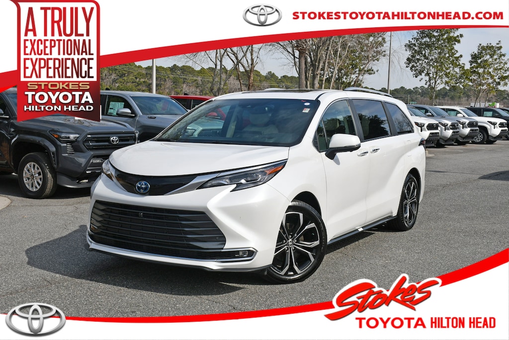 Stokes Toyota Hilton Head 2025 Toyota Sienna Platinum in Wind Chill Pearl, Factory Equipped With. CARFAX One-Owner. Professionally Serviced and Detailed for your Peace of Mind. CALL US TODAY FOR MORE DETAILS OR TO SCHEDULE A TEST DRIVE AT 843.815.0240 OR VISIT US ON THE WEB AT WWW.STOKESTOYOTAHILTONHEAD.COM OR VISIT US AT 100 FORDING ISLAND ROAD, BLUFFTON SC 29910. Peace of mind. Vehicle history report. Title information. Odometer readings. Accident data (if applicable). Service history. Vehicle usage. Recall information (if applicable). Warranty status. Free CarFax report. A name you can trust. Stokes Chevrolet is dedicated to your satisfaction before, during, and after your purchase. We'll go the extra mile to take care of you.