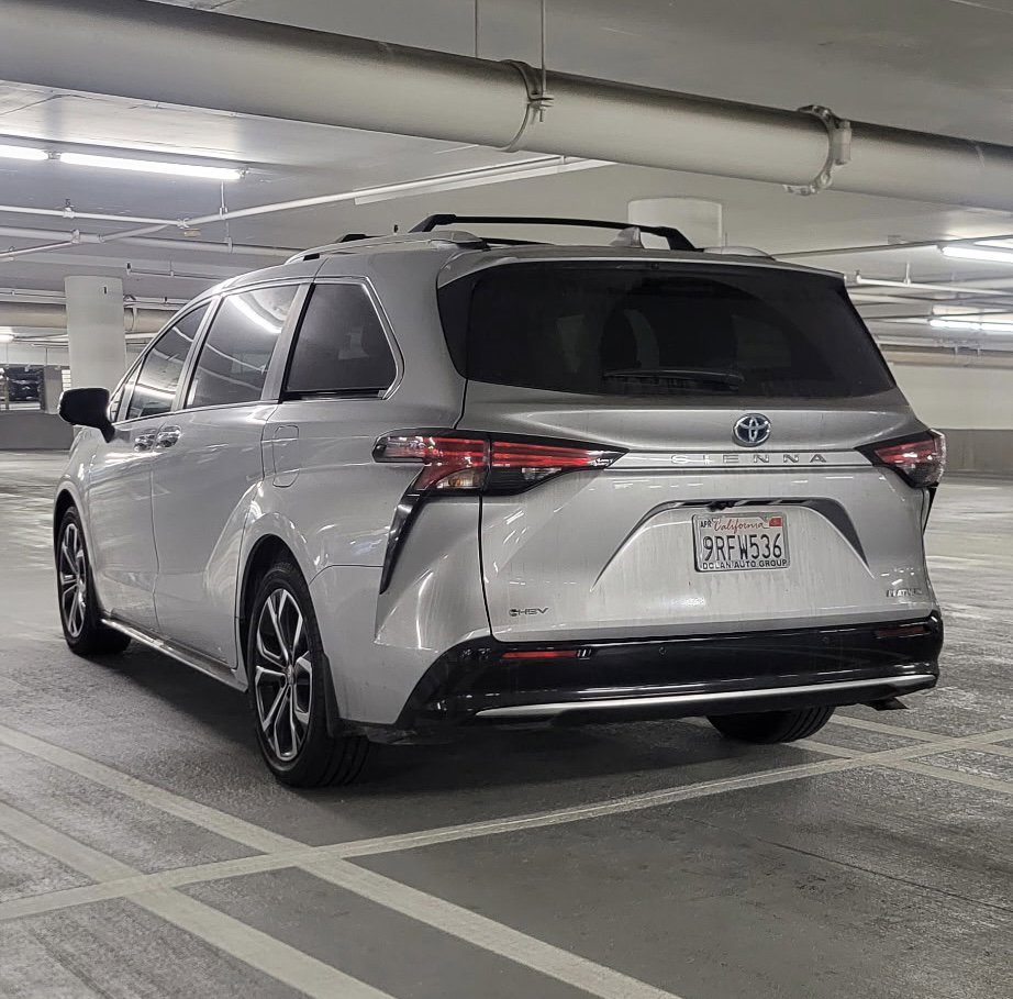 This 2025 Silver Toyota Sienna Platinum FWD is well equipped and includes these features and benefits: 2.5L I4 Hybrid w/VVT-iE DOHC 16V, 12 Speakers, 3rd row seats: split-bench, 4-Wheel Disc Brakes, ABS brakes, Air Conditioning, Alloy wheels, AM/FM radio: SiriusXM, Apple CarPlay/Android Auto, Auto High-beam Headlights, Auto-dimming door mirrors, Auto-dimming Rear-View mirror, Automatic temperature control, Brake assist, Bumpers: body-color, Chrome wheels, Compass, Delay-off headlights, Driver door bin, Driver vanity mirror, Driver's Seat Mounted Armrest, Dual front impact airbags, Dual front side impact airbags, Electronic Stability Control, Emergency communication system: Safety Connect (3-year trial), Exterior Parking Camera Rear, Four wheel independent suspension, Front anti-roll bar, Front Bucket Seats, Front dual zone A/C, Front fog lights, Front Heated Bucket Seats, Front reading lights, Fully automatic headlights, Garage door transmitter: HomeLink, Heads-Up Display, Heated door mirrors, Heated front seats, Heated rear seats, Heated steering wheel, Illuminated entry, Knee airbag, Lane Departure Warning System, Leather Seat Material, Leather Shift Knob, Leather steering wheel, Low tire pressure warning, Memory seat, Navigation System, Occupant sensing airbag, Outside temperature display, Overhead airbag, Overhead console, Panic alarm, Passenger door bin, Passenger seat mounted armrest, Passenger vanity mirror, Power door mirrors, Power driver seat, Power Liftgate, Power moonroof, Power passenger seat, Power steering, Power windows, Radio data system, Radio: Toyota JBL Audio with Navigation, Rain sensing wipers, Rear air conditioning, Rear anti-roll bar, Rear dual zone A/C, Rear reading lights, Rear side impact airbag, Rear window defroster, Rear window wiper, Reclining 3rd row seat, Remote keyless entry, Speed control, Speed-sensing steering, Split folding rear seat, Spoiler, Steering wheel memory, Steering wheel mounted audio controls, Tachometer. Priced below KBB Fair Purchase Price! CARFAX One-Owner. Odometer is 1689 miles below market average!