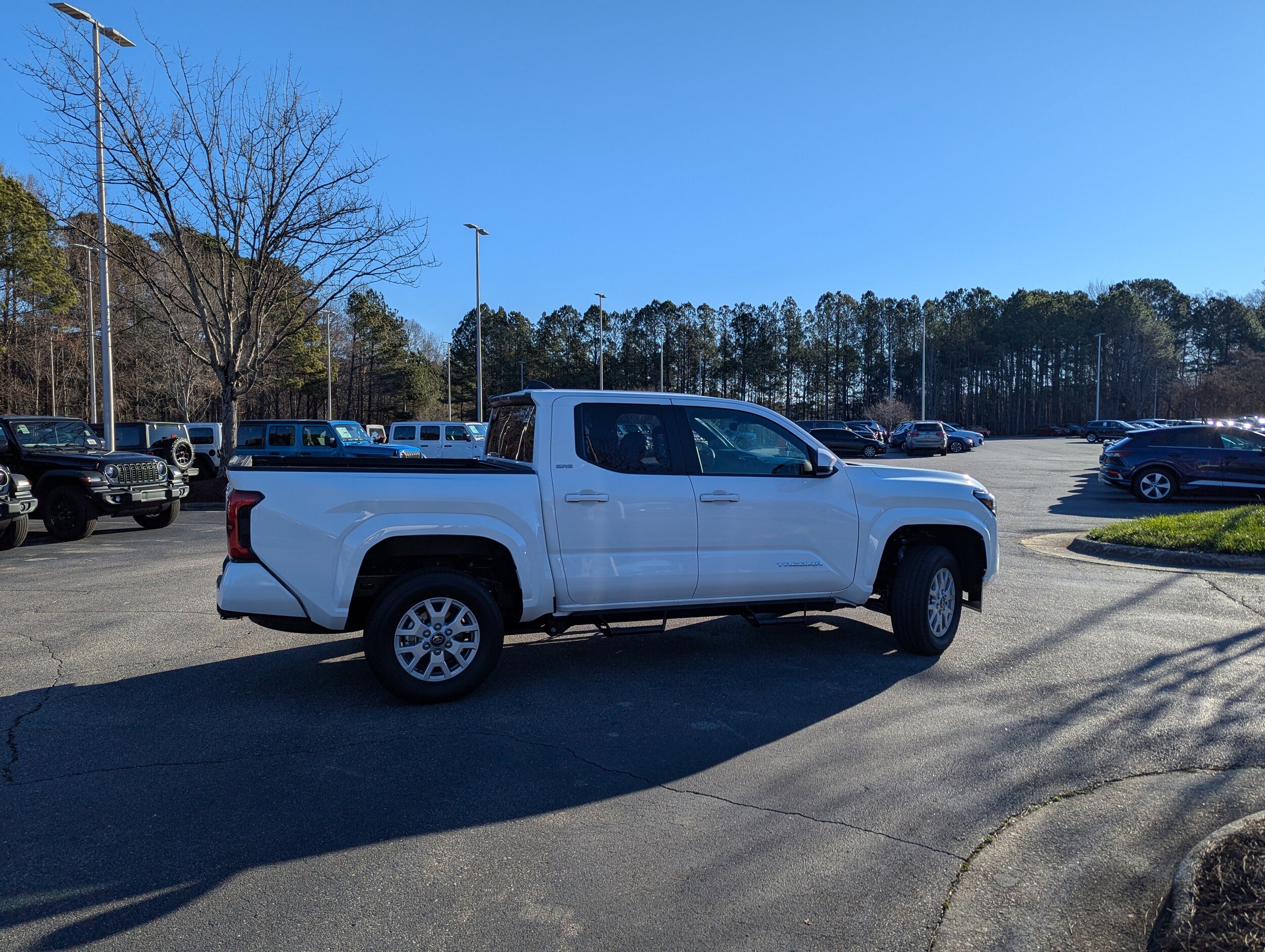Ice Cap 2025 Toyota Tacoma SR5 4WD 8-Speed Automatic 2.4L 4-Cylinder owned by dealer, back up camera, 4-wheel drive, smart key with push button start, pre-collision system with pedestrian detection, full-speed range dynamic radar cruise control, lane departure alert with steering assist, Apple CarPlay & Android Auto, 1-owner, no accidents, must see! Recent arrival! Odometer is 4916 miles below market average! Our expert sales staff will help you find the perfect vehicle for your lifestyle. AutoPark is the leading Chrysler/Jeep dealership in the Raleigh, Durham, and Garner area, offering excellent customer service, a friendly environment, attractive financing options, and great cars!