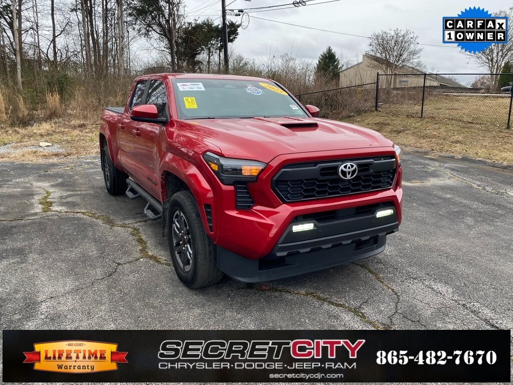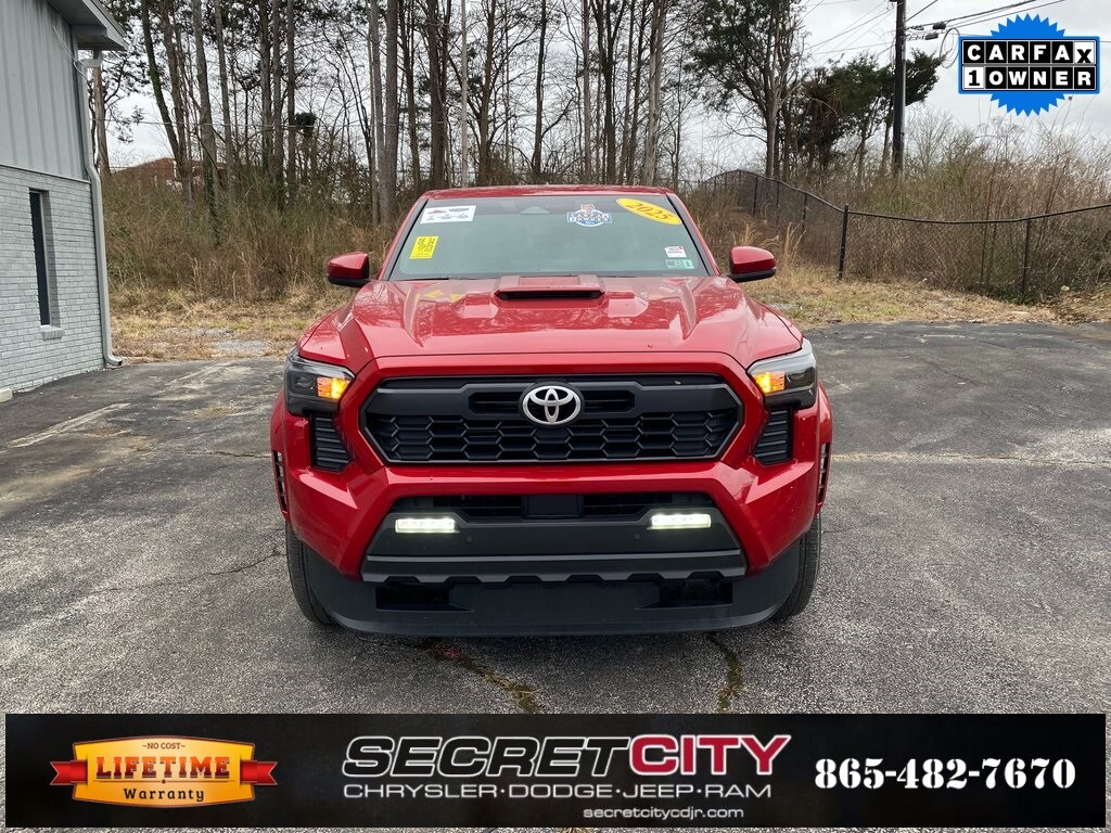 Recent Arrival! Carfax One-Owner. Clean Carfax. 2025 Toyota Tacoma TRD Sport 4WD, 3.583 Axle Ratio, 4-Wheel Disc Brakes, 6 Speakers, ABS brakes, Air Conditioning, Alloy wheels, AM/FM radio: SiriusXM, Anti-whiplash front head restraints, Apple CarPlay/Android Auto, Auto High-beam Headlights, Auto-dimming Rear-View mirror, Automatic temperature control, Brake assist, Bumpers: body-color, Driver door bin, Driver vanity mirror, Dual front impact airbags, Dual front side impact airbags, Electronic Stability Control, Emergency communication system: Safety Connect (1-year trial), Exterior Parking Camera Rear, Fabric Seat Trim, Four wheel independent suspension, Front anti-roll bar, Front Bucket Seats, Front Center Armrest, Front fog lights, Front reading lights, Fully automatic headlights, Heated door mirrors, Illuminated entry, JBL Premium Audio, Knee airbag, Leather Shift Knob, Leather steering wheel, Low tire pressure warning, Occupant sensing airbag, Outside temperature display, Overhead airbag, Overhead console, Panic alarm, Passenger door bin, Passenger vanity mirror, Power door mirrors, Power steering, Power windows, Radio: 8" Toyota Audio Multimedia, Rear step bumper, Rear window defroster, Remote keyless entry, Security system, SofTex Seat Trim, Speed control, Speed-sensing steering, Split folding rear seat, Steering wheel mounted audio controls, Tachometer, Telescoping steering wheel, Tilt steering wheel, Traction control, Trip computer, Turn signal indicator mirrors, Variably intermittent wipers, Wheels: 18" TRD Sport Alloy.