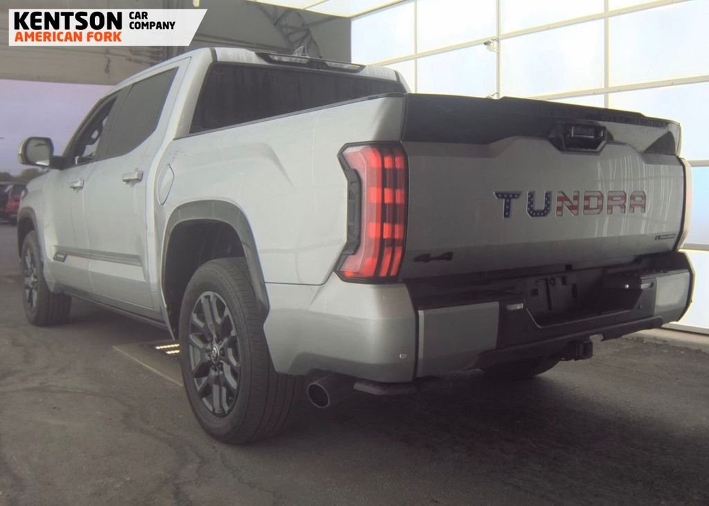 Recent Arrival! 2025 Toyota Tundra Hybrid Platinum Silver 4WD 4D CrewMax 3.4L V6 10-Speed Automatic. CARFAX One-Owner. 20/24 City/Highway MPG. Free Carfax available at www.kentsoncarcompany.com. For questions or to setup an appointment, visit Kentsoncarcompany.com. We carry only clean Carfax and clean title vehicles under Factory Warranty. Voted Best Independent Dealer in Utah 12 Years in a Row by Best Of State Winner 2013-2025. Voted Best Independent Dealer by Best of Salt Lake City 2021. Voted Top Dealer by Cargurus 6 Years in a row (2020-2025). 15x Time Winner of Utah’s Dealer of the Year by DealerRater.com (2011-2025). National Dealer of the Year as voted by DealerRater.com.