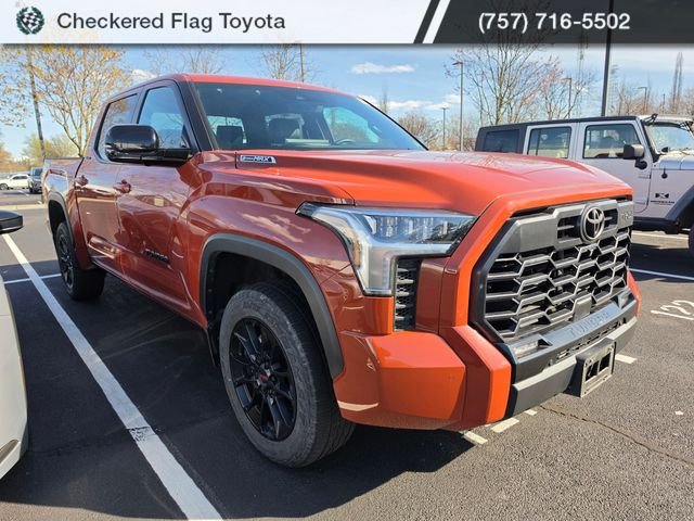 2025 Toyota Tundra Hybrid Limited CARFAX One-Owner. Apple CarPlay/Android Auto, Automatic temperature control, Blind Spot Monitor, Exterior Parking Camera Rear, Front & Rear Mud Guards, Front dual zone A/C, Front fog lights, Fully automatic headlights, Heated & Ventilated Front Bucket Seats, Heated steering wheel, High Grade Full LED Headlamp, Limited Premium Package, Memory seat, Multi-Terrain Back Monitor, Navigation System, Panoramic View Back Monitor, Power driver seat, Power passenger seat, Radio: Premium Audio w/JBL, SofTex Seat Trim, Towing Technology Package, TRD Off-Road Package, Ventilated front seats, Wheels: 20" x 8.5" Black Alloy. 4WD 10-Speed Automatic.