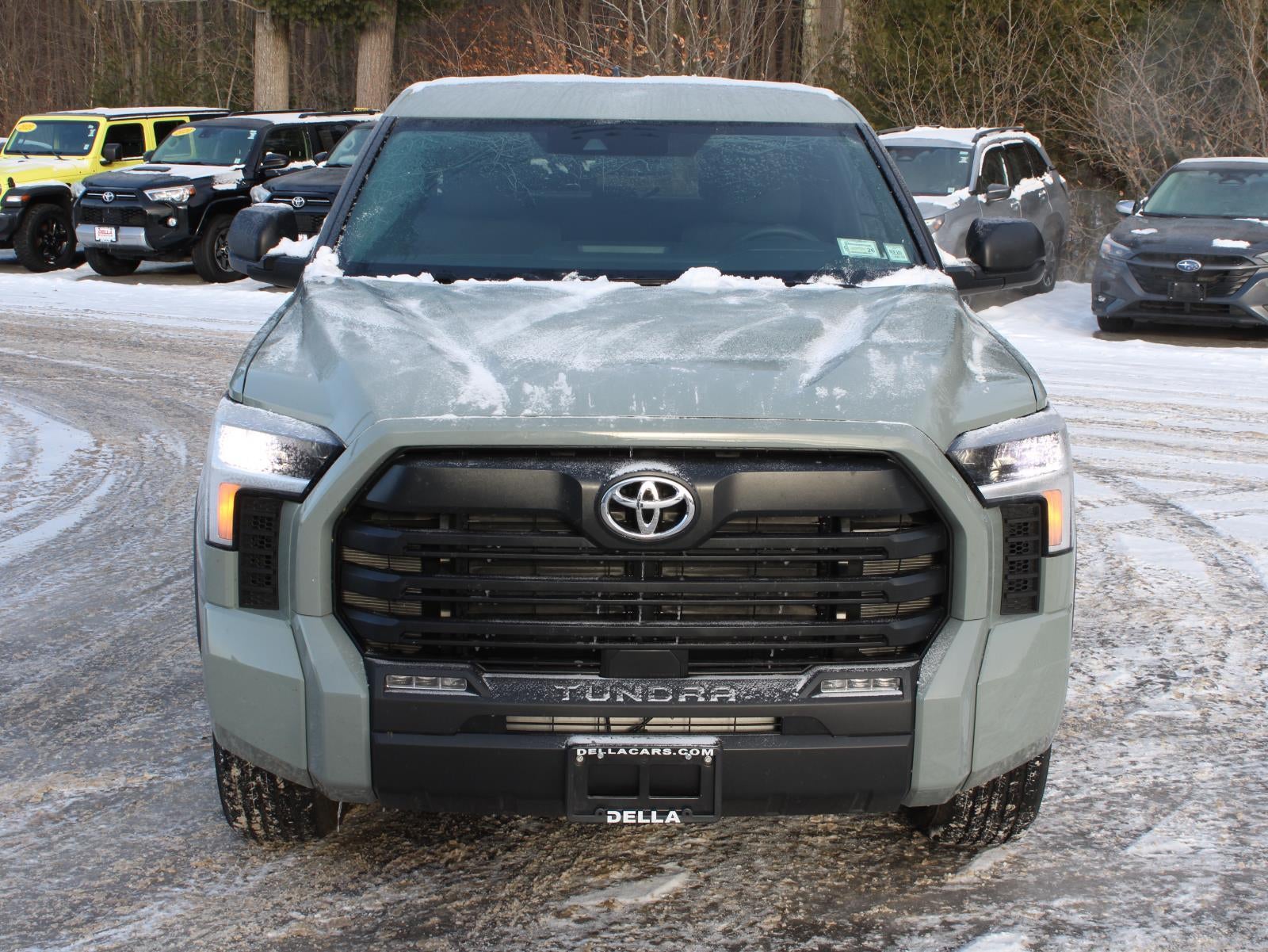 2025 Toyota Tundra SR5. Odometer: 7,054. Exterior Color: Lunar Rock. Interior Color: Black. Safety and Security features include Pedestrian impact prevention, hands-on cruise control, rear camera, and technology and telematics features such as Apple CarPlay/Android Auto smart device wireless mirroring and mobile hotspot.